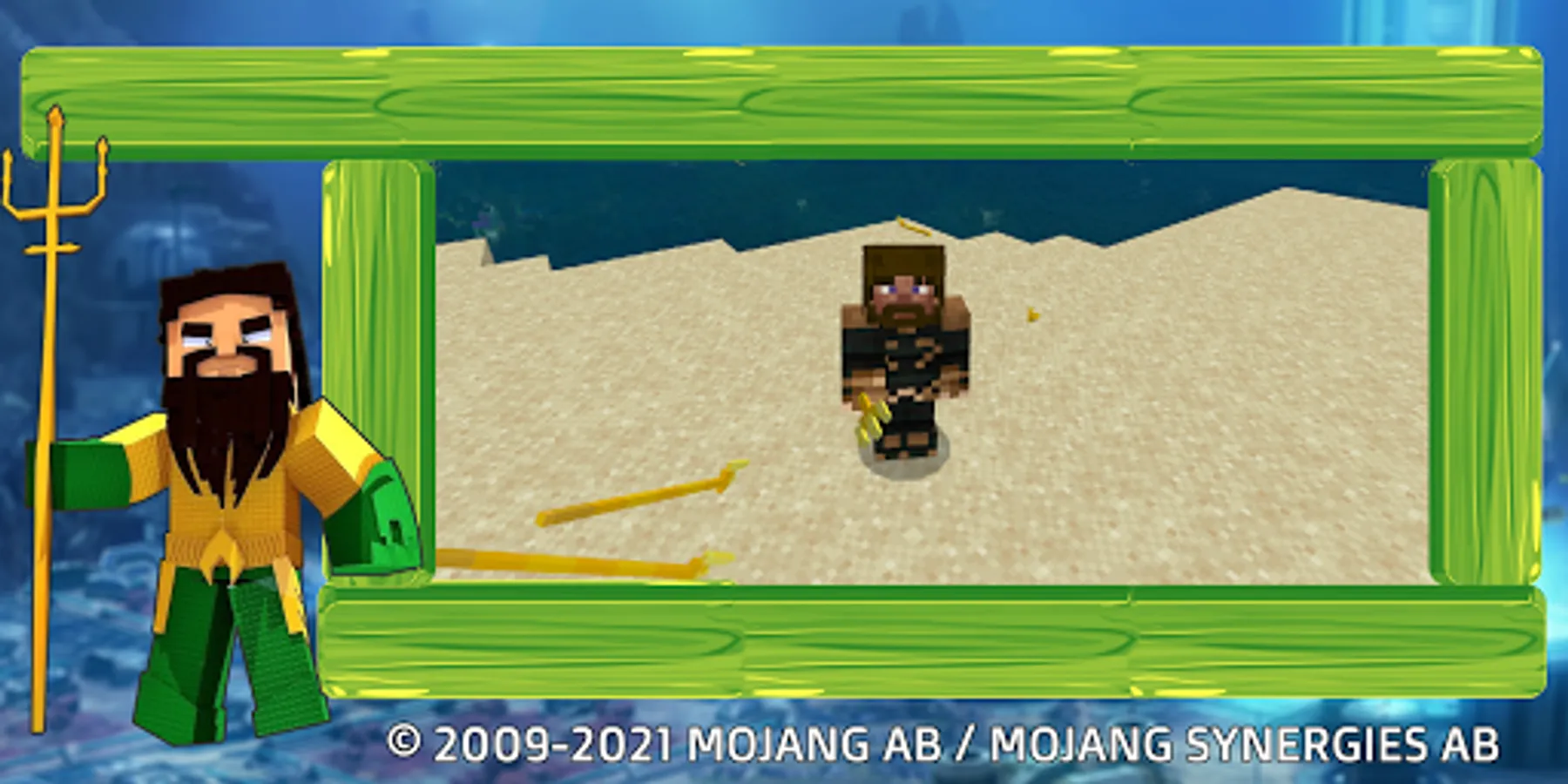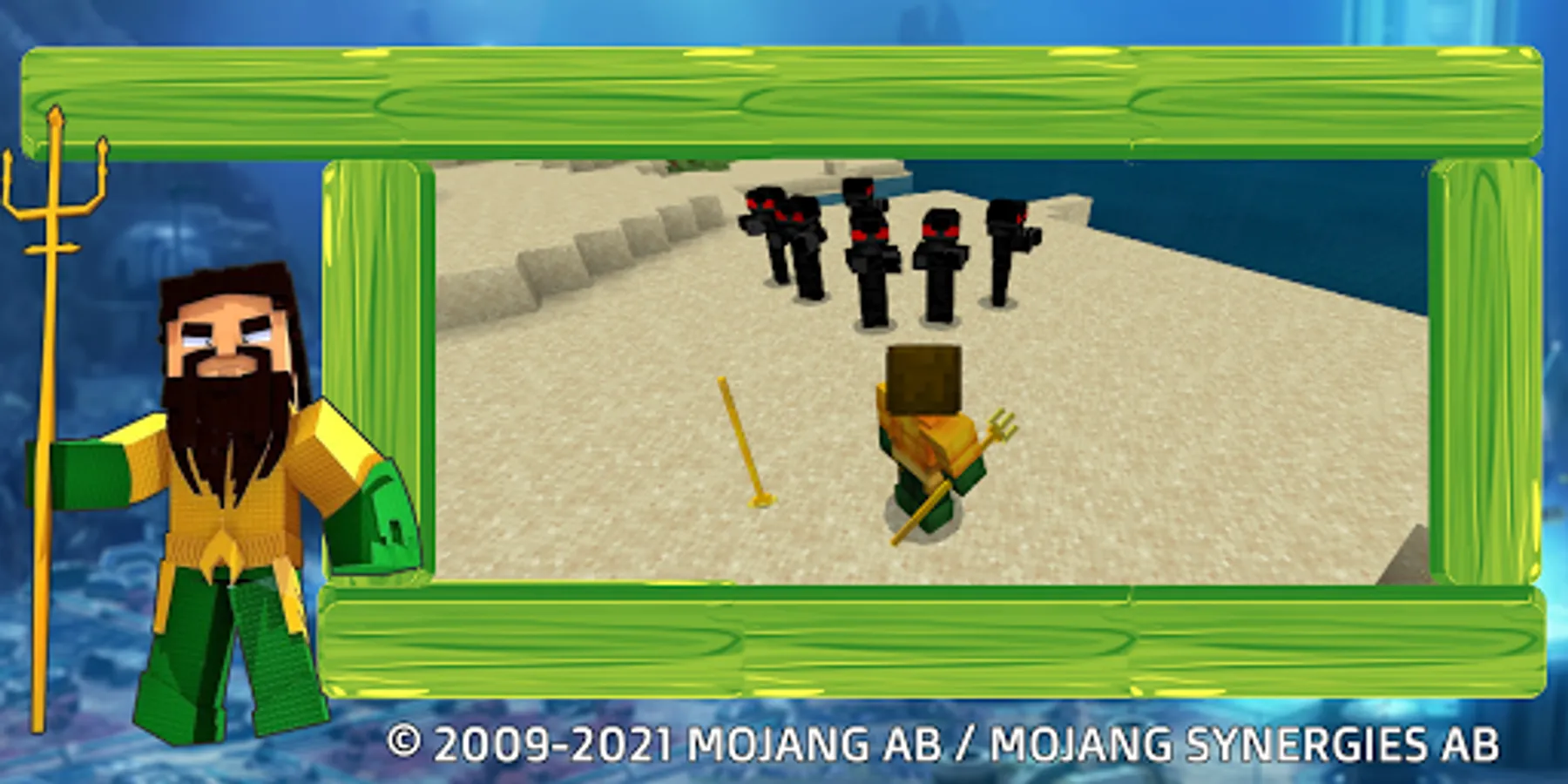 The addon will allow you to conquer the fourth element - water. You will receive a Poseidon Trident and will be able to throw it both on land and under water. The mod will change some types of armor and replace them with popular superhero skins: aquaman, sea queen mera and the gilded appearance of the underwater king. In order to try out new weapons and immerse you in the role-playing game even more, we have added new amphibious mobs - ninja. These amphibians spawn in the hollows of the atlantis. Monsters are hostile to the player, fish and other inhabitants of the depths. As soon as you start the mod, you start with the fact that you do not have any superpower and are an ordinary lighthouse keeper, over time, applying your skills in crafting, you can change your skin and become an aquaman. But the most important thing is to find the recipe and enough resources to craft the atlantis Trident. Your goal and your character (Arthur) is to find all the resources for the trident, with its help you will become the ruler of the seas and oceans. If you have not yet matured and mastered a powerful weapon, you can be captured by the Orm's warriors. If you are arrested it is better for you to start all over again or escape from prisons, get a weapon and save the princess. With a new weapon - a trident - the most common creepers, endermen and ender dragons will not be your competitors and will fall in battle. In the course of the blocky game, save everyone, you never know how ordinary creatures can be useful to you, maybe there is a doctor or even a marine scientist and theorist among us.