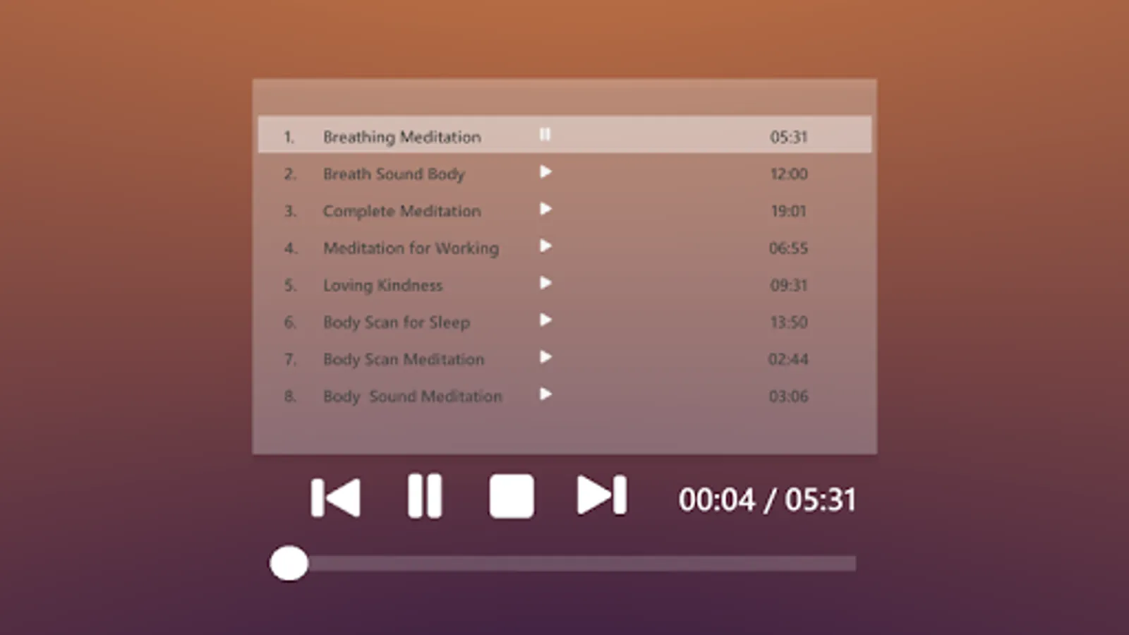 Just Sleep offers masterclass in guided meditations delivered by Diana Watson (Director of Mindfulness Education at UCLA) which covers range of topics such as Breathing, Sleeping, Body Scan and Sound, Working with Difficulties, Loving and Kindness. Just Sleep helps you to improve your focus in managing anxiety, improving stress relief, helping you to calm and increase in happiness. Take a break in your day to relax and breathe. Discover how meditation and relaxation can help you find inner peace and improve your life.
