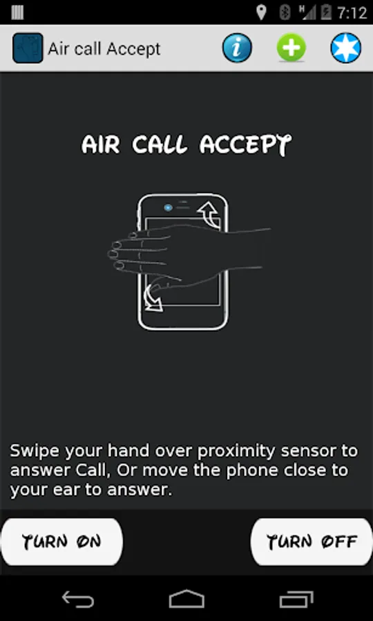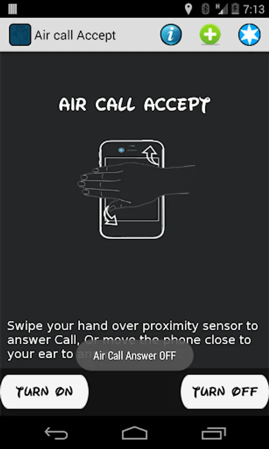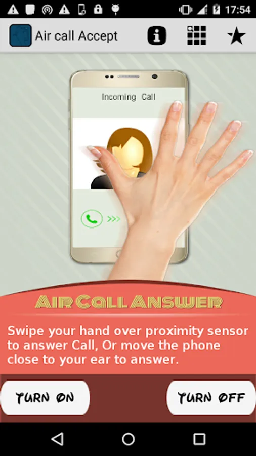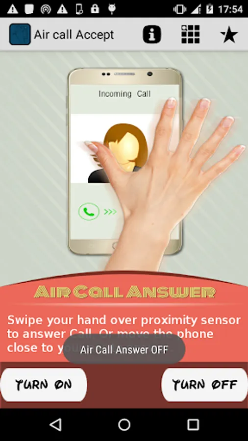 You can answer the calls with this application whenever you could not touch the screen. By just giving air gesture you can answer your call. This is just like on air call receive.