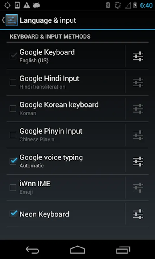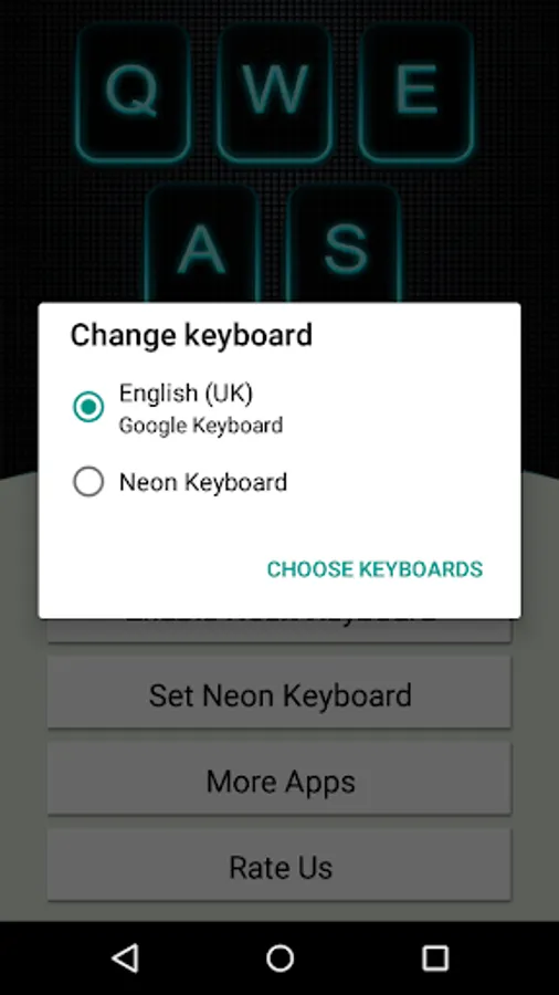 C - Now select set Neon Keyboard application and pick keyboard as Neon Keyboard .
