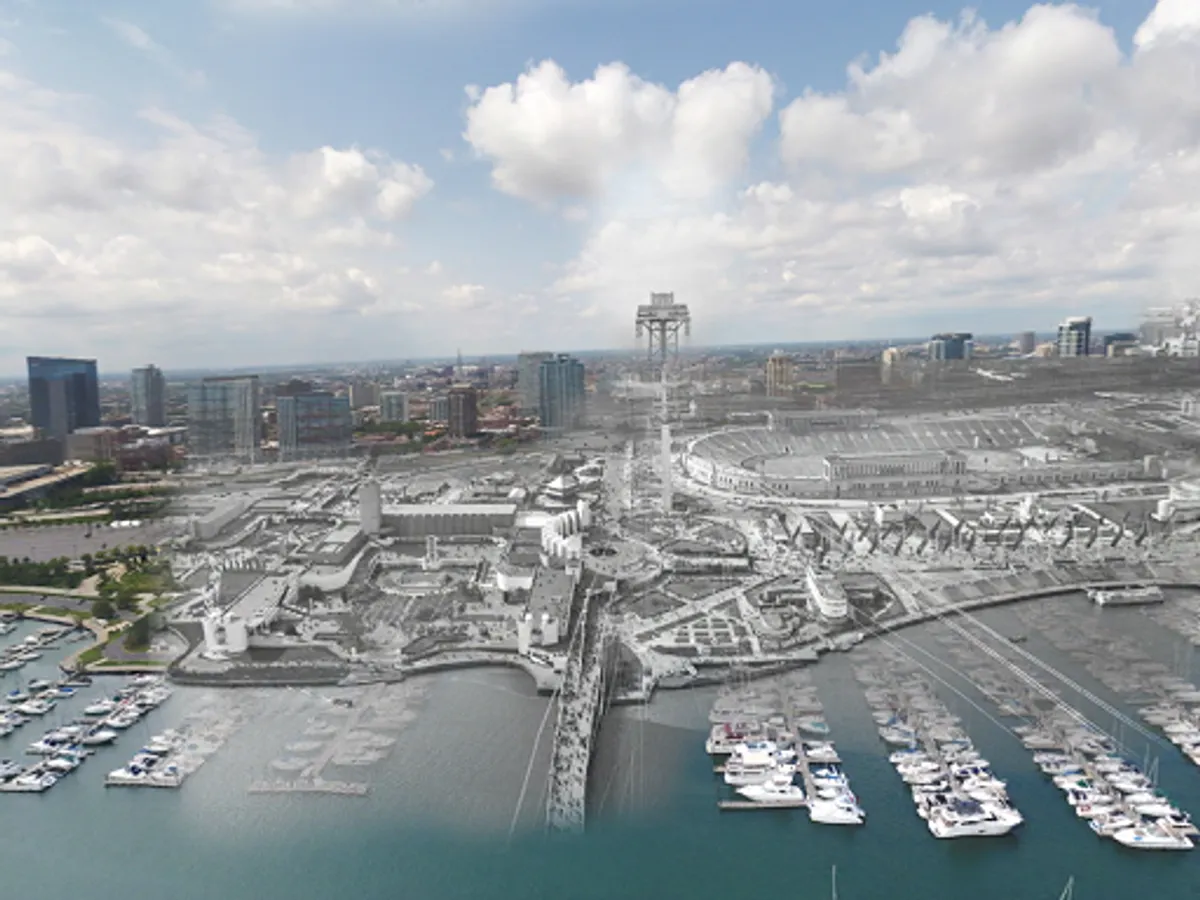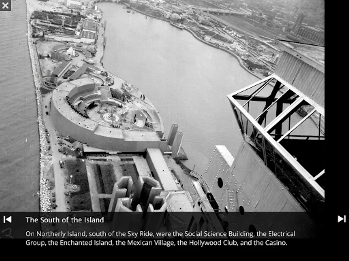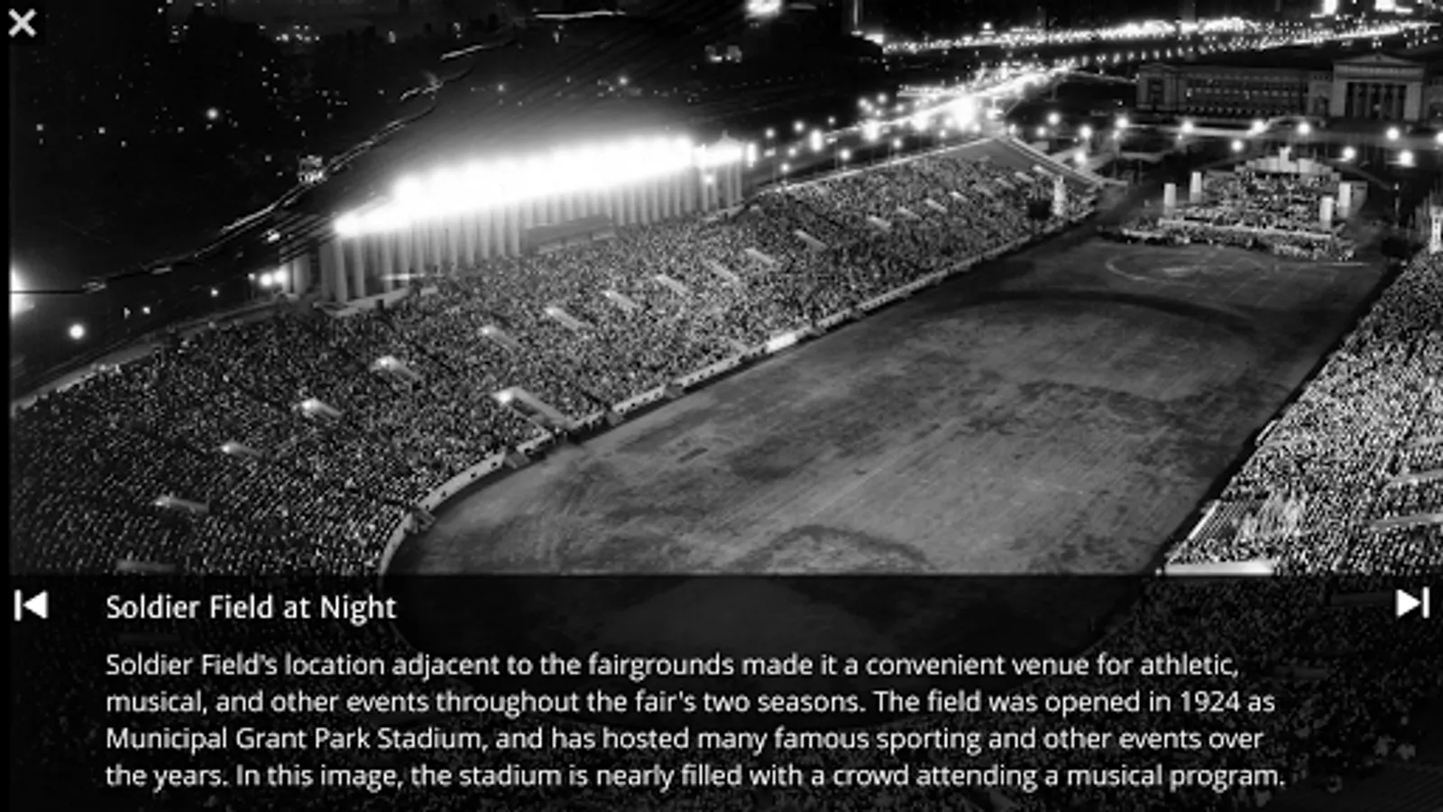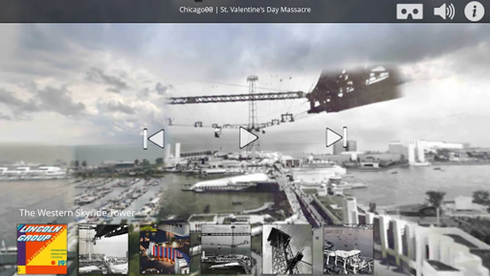 Chicago00: A Century of Progress is a virtual reality experience of Chicago's 1933 World’s Fair. Historical images from the Chicago History Museum’s photography and film archives are combined with contemporary 360 degree site photography to immerse audiences in an experience of a specific place and time in the past. Using historical images taken from the fair's 628 foot Sky Ride and new drone photography, audiences are transported along the route of the Sky Ride cable cars high above the fair.