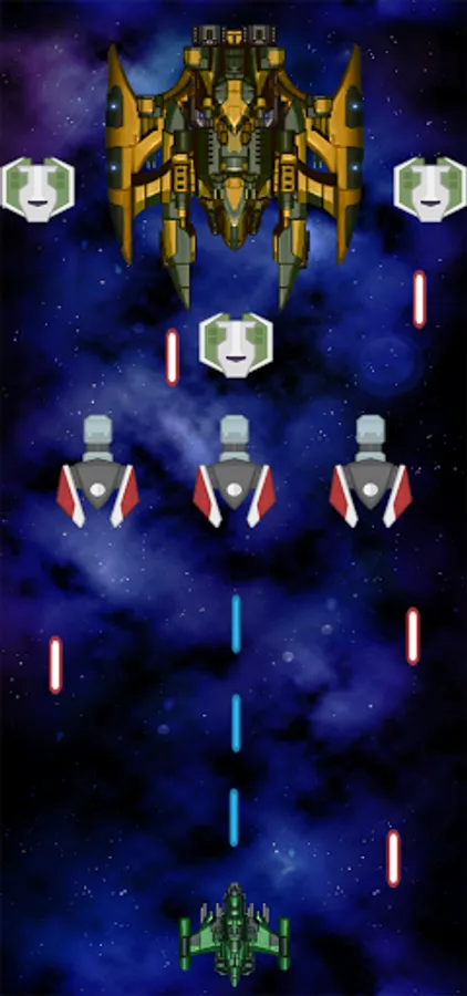 -Raise the score to upgrade your spaceship to fight with giant enemies and alien invaders.