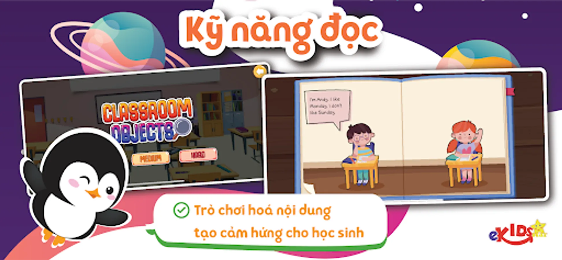 In terms of teaching English, EKids Star is the first application that includes all 4 skills of English including listening, speaking, reading, writing and vocabulary, grammar according to the curriculum of Cambridge and the Ministry of Education.
