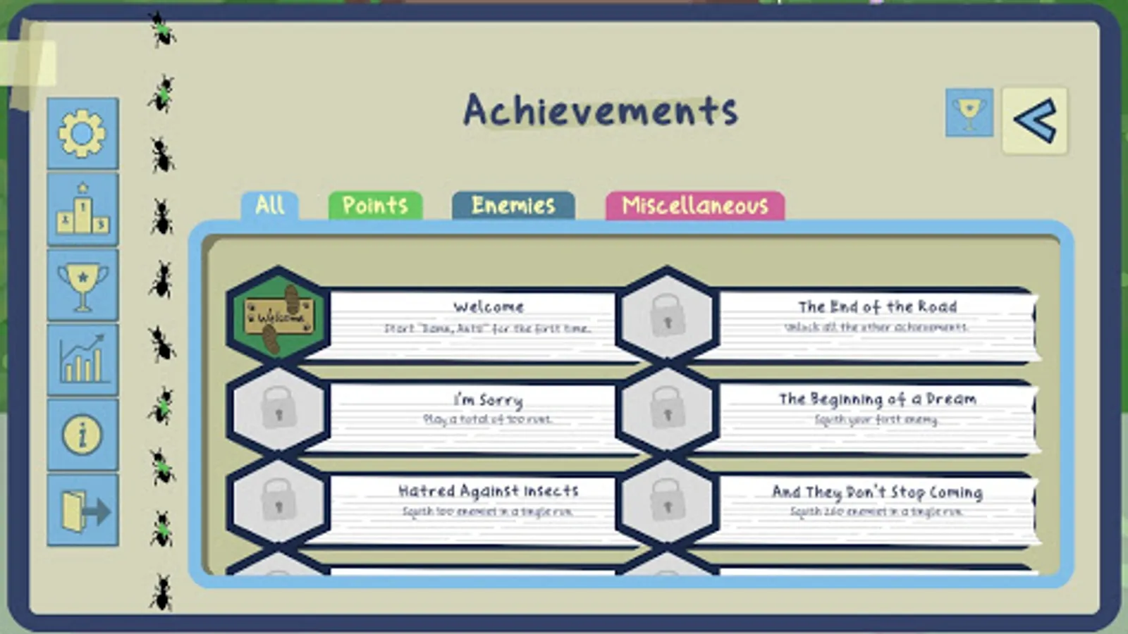 Have you ever had the desire to exterminate all living insects? The time has come. How far can you go? See how many points you can get while avoiding obstacles and.. oh, of course... Not being consumed by the devious insects all around you!
