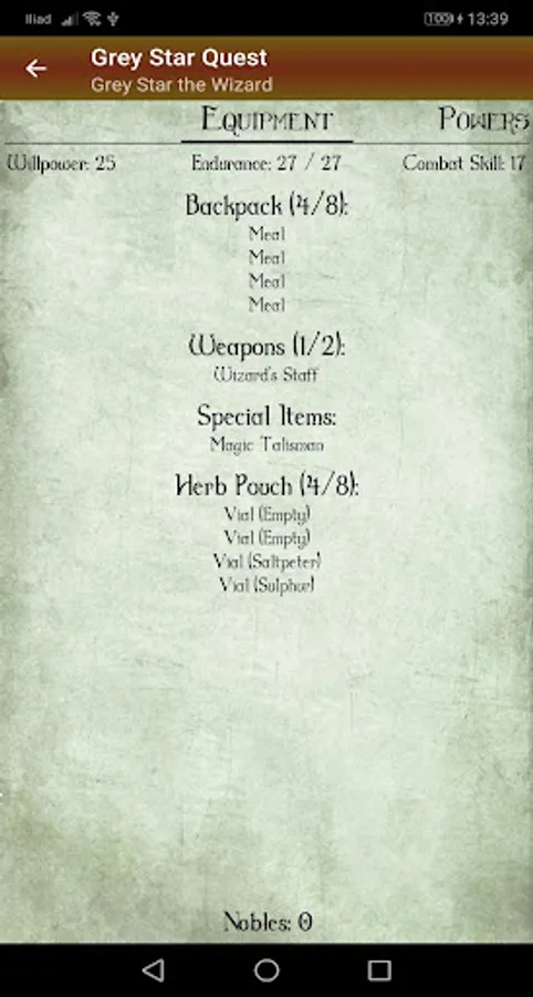 I want to remark, I do not own any rights regarding the books; Grey Star is a creation of the great Joe Dever, and the Internet editions used in this application belong to the staff and members of www.projectaon.org; I am, however, responsible for everything regarding the algorithms and interfaces of this application.
