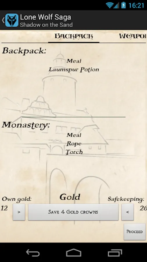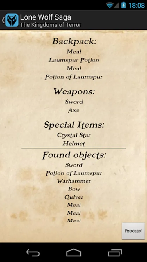 I want to remark, I do not own any rights regarding the books; Lone Wolf is a creation of the great Joe Dever, and the Internet editions used in this application belong to the staff and members of www.projectaon.org; I am, however, responsible for everything regarding the algorithms and interfaces of this application.