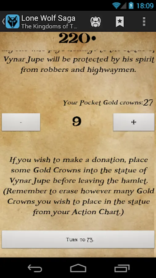 Create and save more profiles, select you favorite Kai Disciplines, carefully choose your way exploring the world of Sommerlund, play and replay the game for free for as long as you like; if you find any bugs, you can send me a report in real-time through the game-interface.