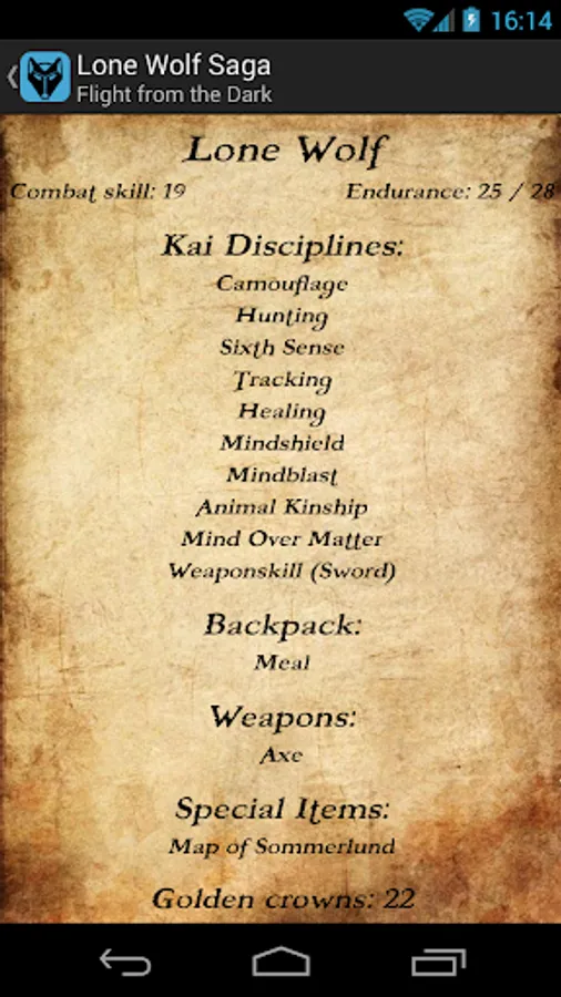 This application is a complete collection of the saga, starting from the Kai levels of "Flight From the Dark" and "Fire on the Water", up to "The Curse of Naar" and the last levels of the Kai Grand Master.