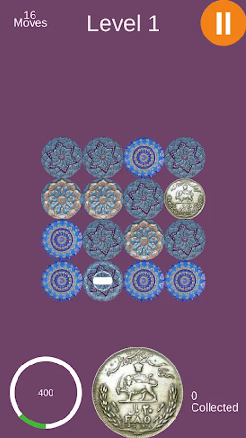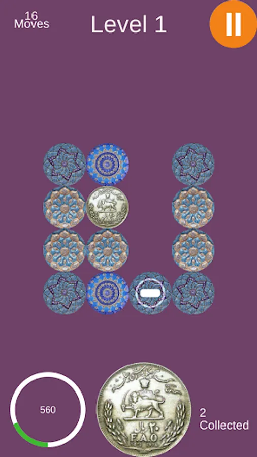 In this variant of the classical match 3 games, patterns of mina kari ( an Iranian art form) are used for matching. Find the similar ones and match them. Progress through levels by gaining enough scores, collecting coins along the way.