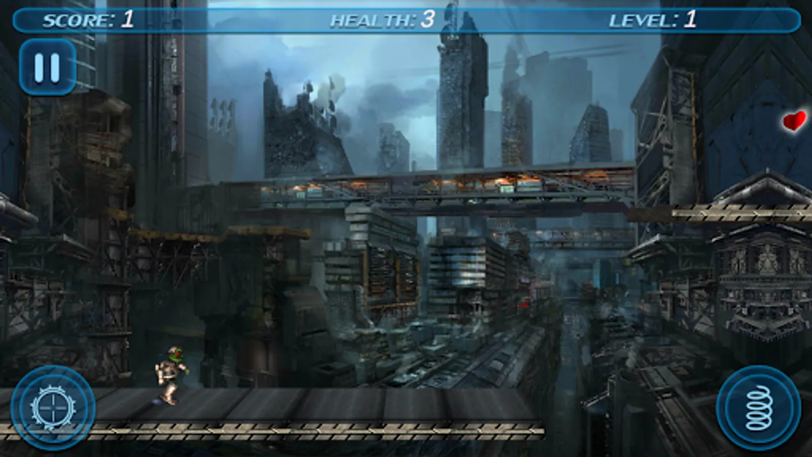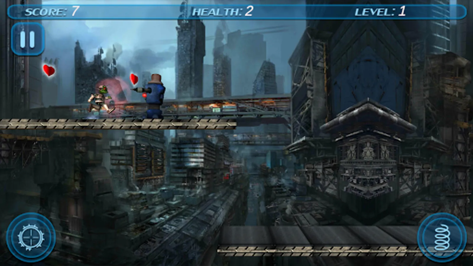 In this endless runner game, , keep shooting enemies ,collecting health items and avoid falling down platforms. stay alive for as long as you can.