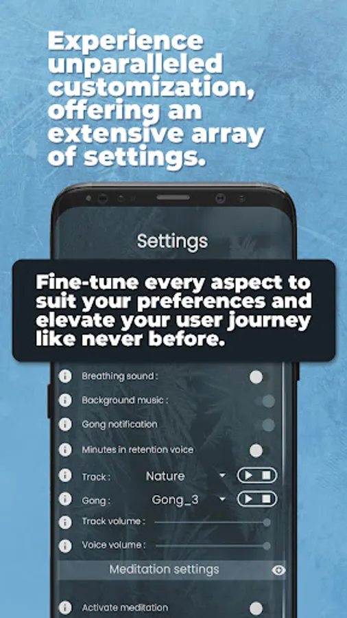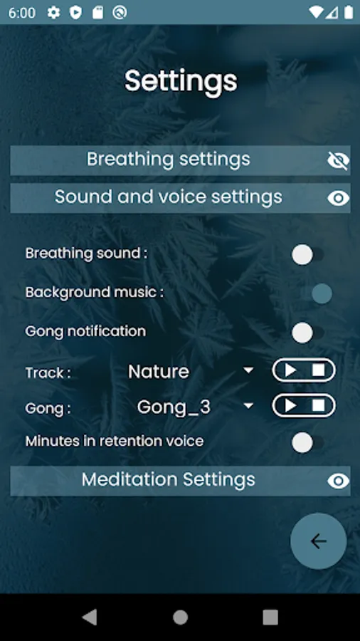 Background music : Currently there are two tracks available to choose from. Default song is tuned in 432Hz.