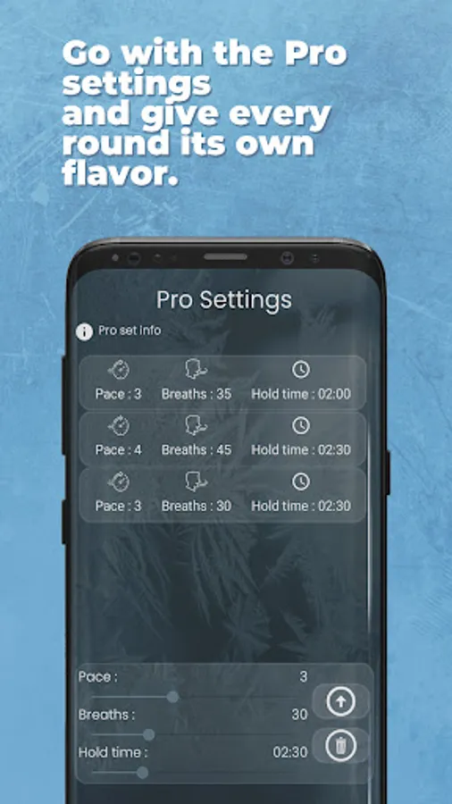 NEW : With Pro rounds you can now create a list of rounds each having unique settings for a pace, breaths and hold time.