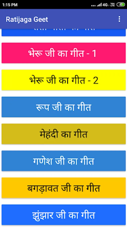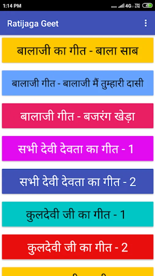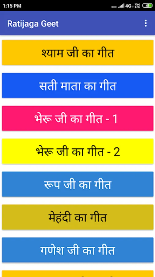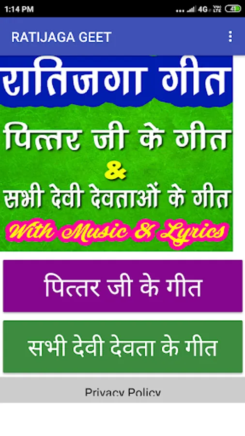 YOU WILL FIND VARIOUS RATIJAGA,PITTAR JI AND OTHER DEVI DEVTA SONG IN OUR APP WITH LYRICS AND MUSIC BOTH.
