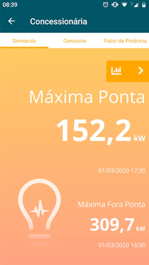 Graphs and tables of demand, consumption and power factor.