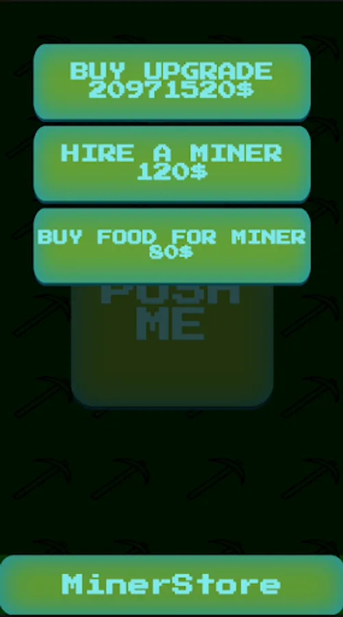 MinerClicker - игра Time-Killer в которой нужно зарабатывать деньги нажимая на кнопку чтобы продвигать своих робочих и улучшать их, и не забывайте их кормить ;)