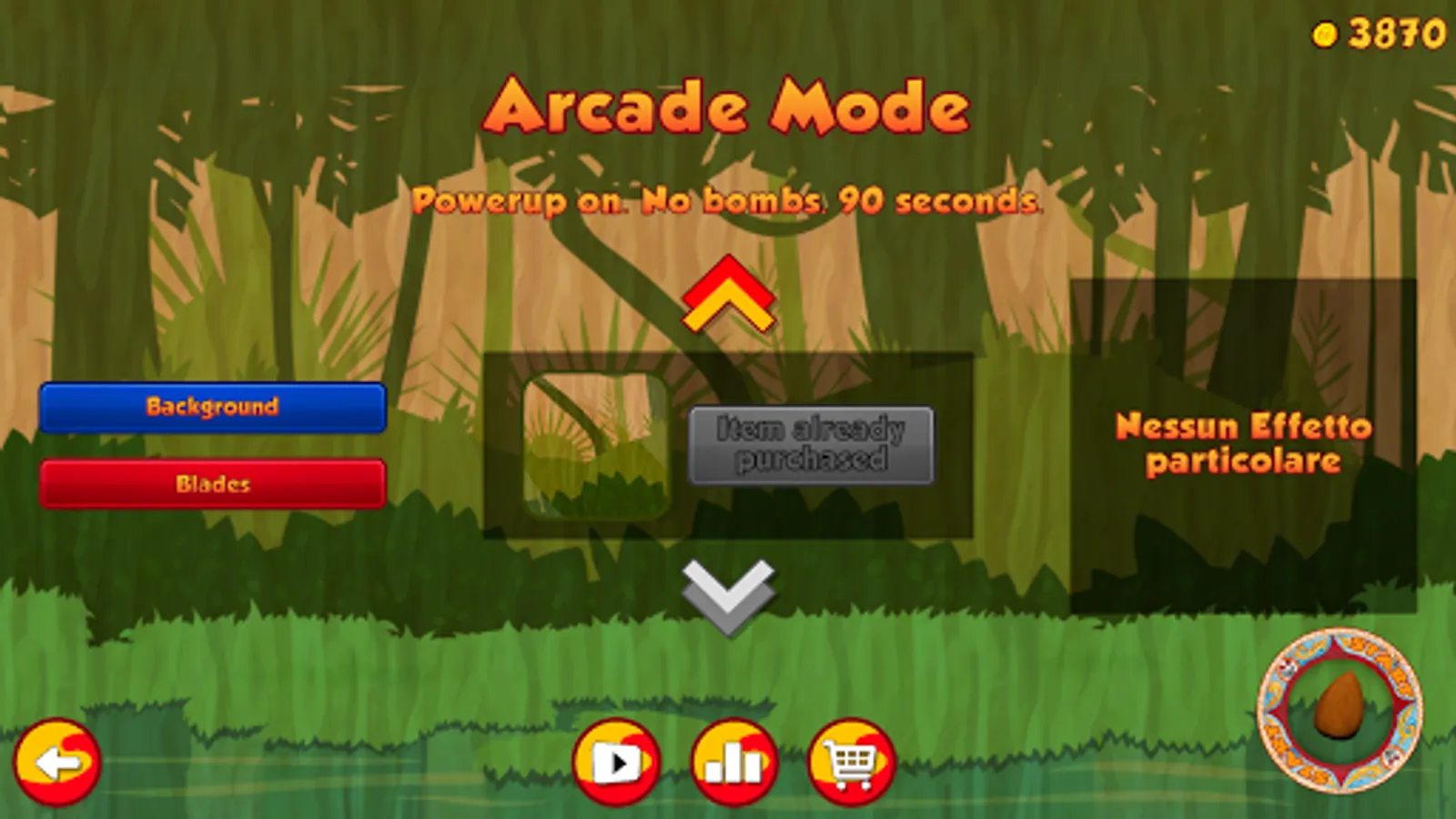 - CLASSIC, in which you are granted only 3 errors. Food that is not sliced will make you lose points. Don't touch the bombs!
