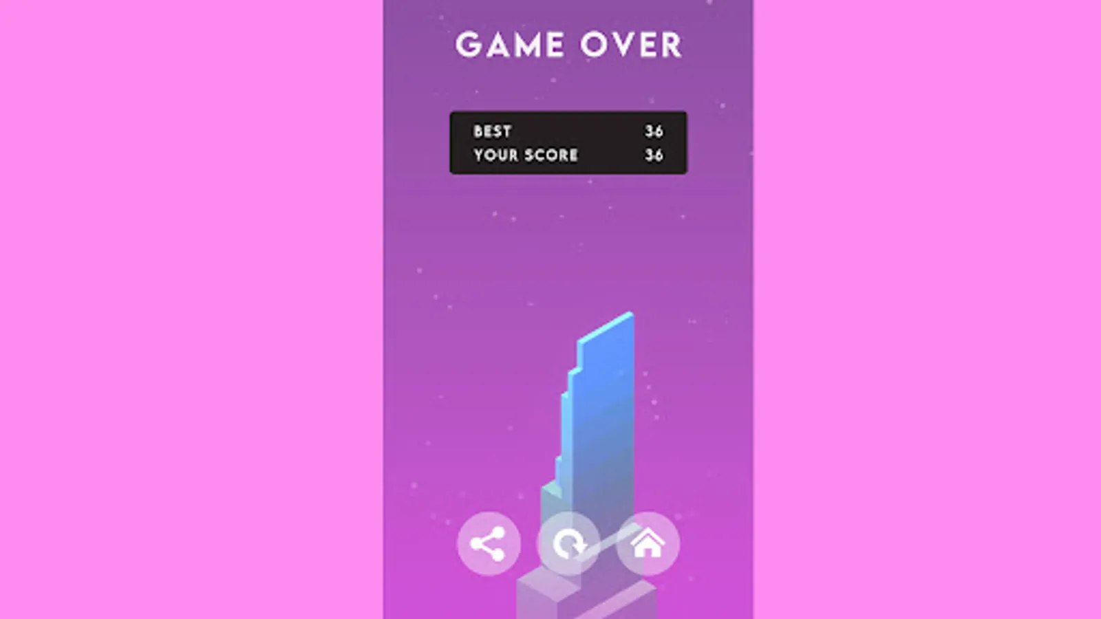 Tap the screen to place a cube on top of another and create a tower of cubes. Be careful not to hit the spikes, walls or bricks that will make your tower fall. The higher you stack, the faster the game gets and the more challenging it becomes.