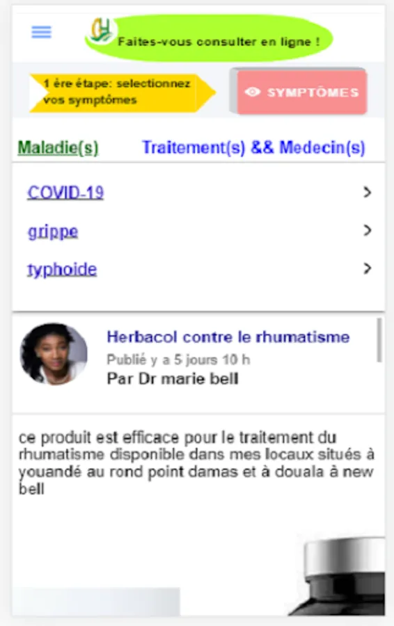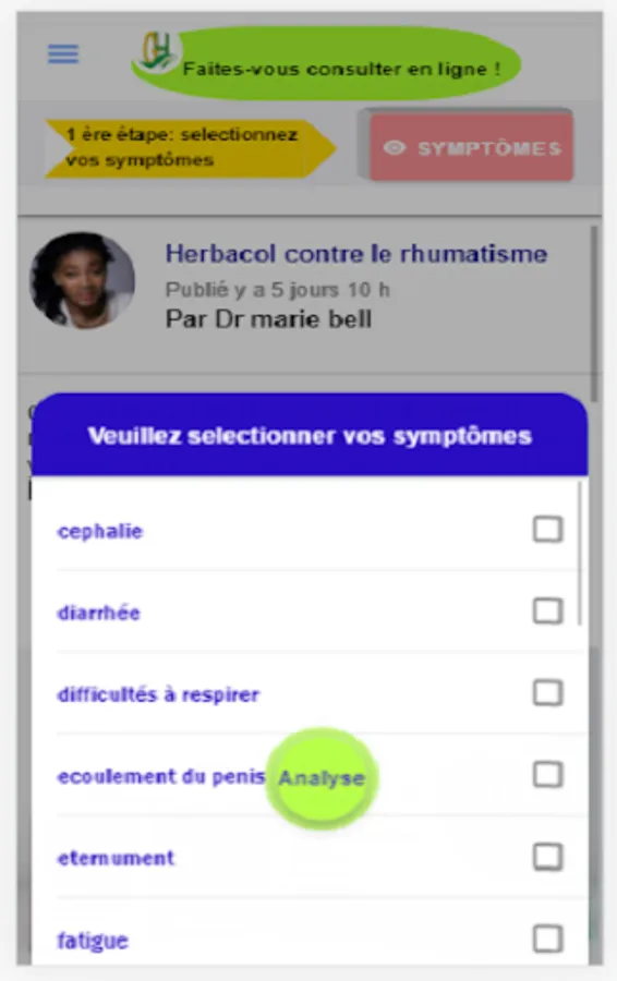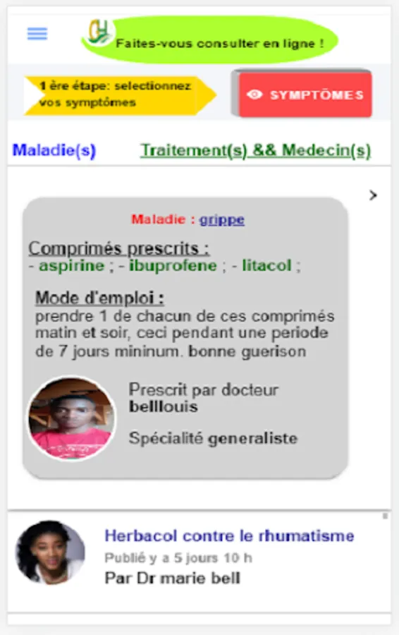 réseau social qui analyse des symptômes et fournit le résultat des potentielles maladies et leurs traitements