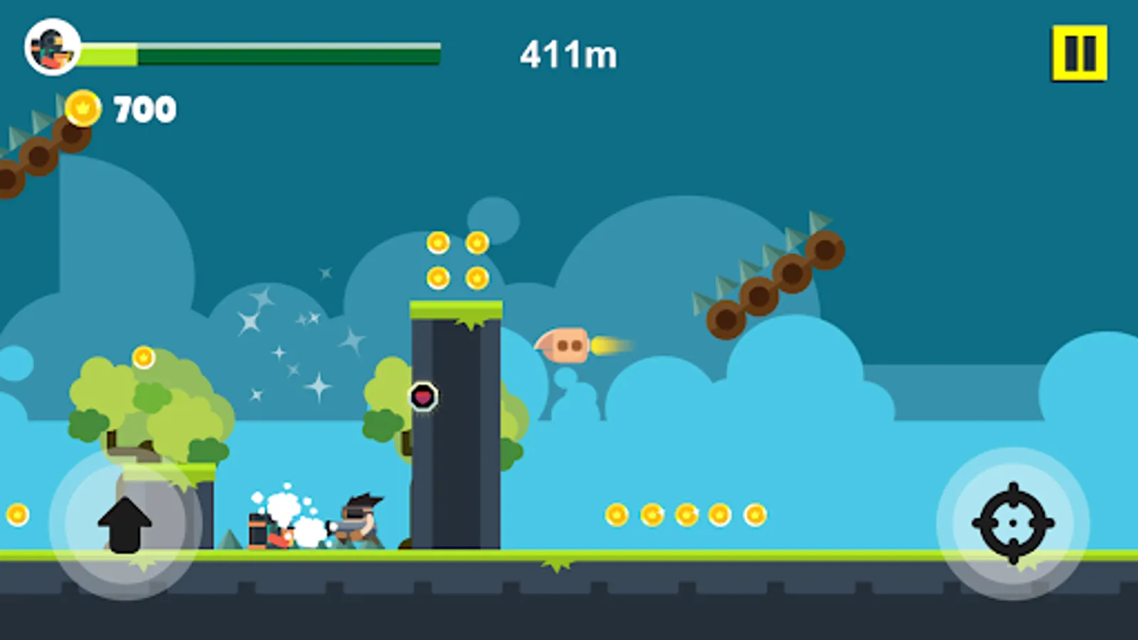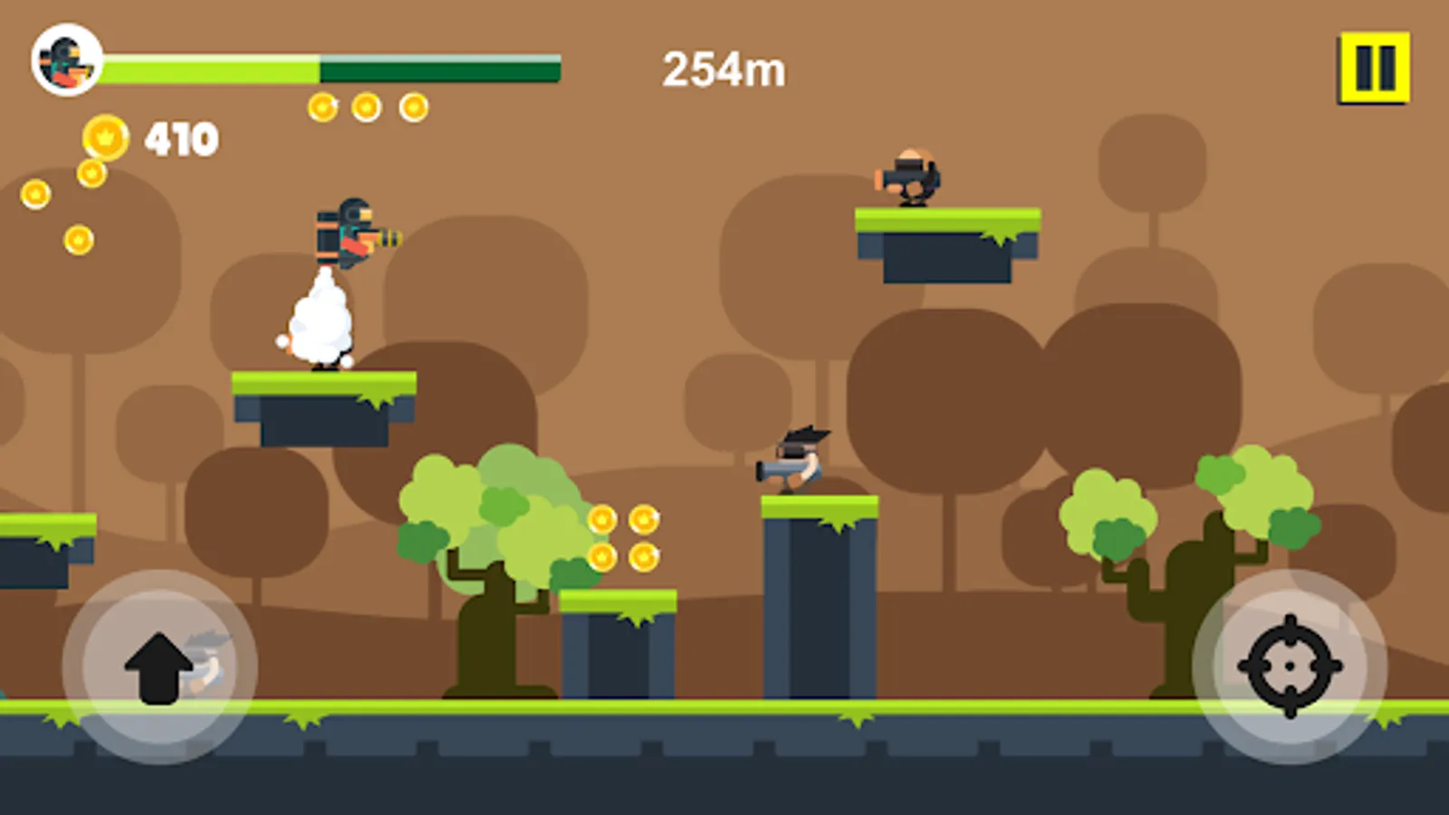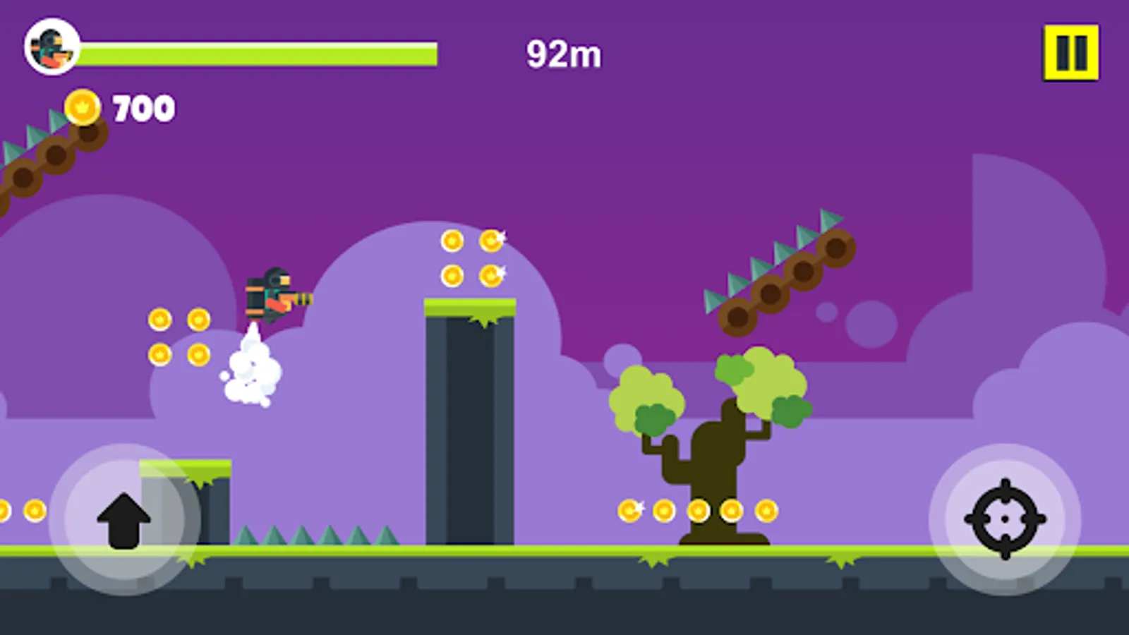 When you press the screen, the jetpack kicks in and lifts you to the skies. Shoot all the enemies by firing the gun in your hand while in the air. Watch out for the traps that come your way and avoid them. Enjoy playing multiple characters and chapters whenever you want.