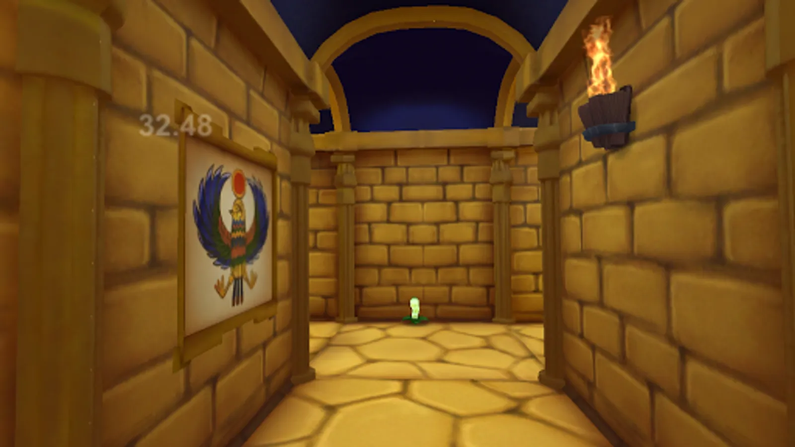 An unexcavated pyramid has been found in a desert somewhere in Egypt. The interior of the ruin is a complicated maze and it is rumored that there is a King's Chamber inside. A treasure of the ancient God Anubis would be hidden in the depth of the maze. Professor B.Gammon, his assistant Seneto and their pet dog Ludo are challenged to investigate the maze. However, the entrance is just a small gap in the wall. Only a small dog can get through it. The professor decided to use the Mask of Anubis. The person who wears this mask can see the maze through the walls and create a map to help the dog Ludo to find its way to the Kings Chamber. Will Ludo be able to reach the King's Chamber with your help as a member of the investigation team?