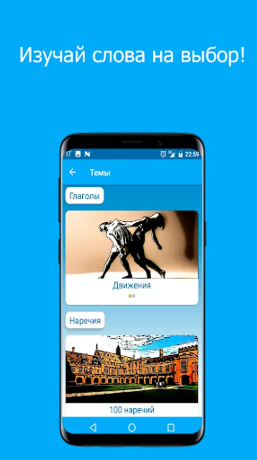 specially for you the most interesting and necessary topics have been selected. The application has my dictionary, in which you can add English words of your choice, and learn them. There is also a study of English phrases, with the help of which you can learn to speak English.