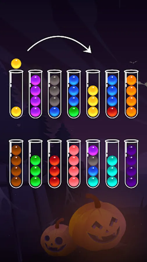• Tap any tube to move the ball lying on top of the tube to another tube.