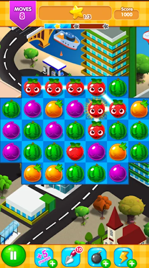 This game includes 1000 levels of fruity adventure throughout the map with different regions. Overly cute fruit visual and great visual effects has implemented for such lovely game.