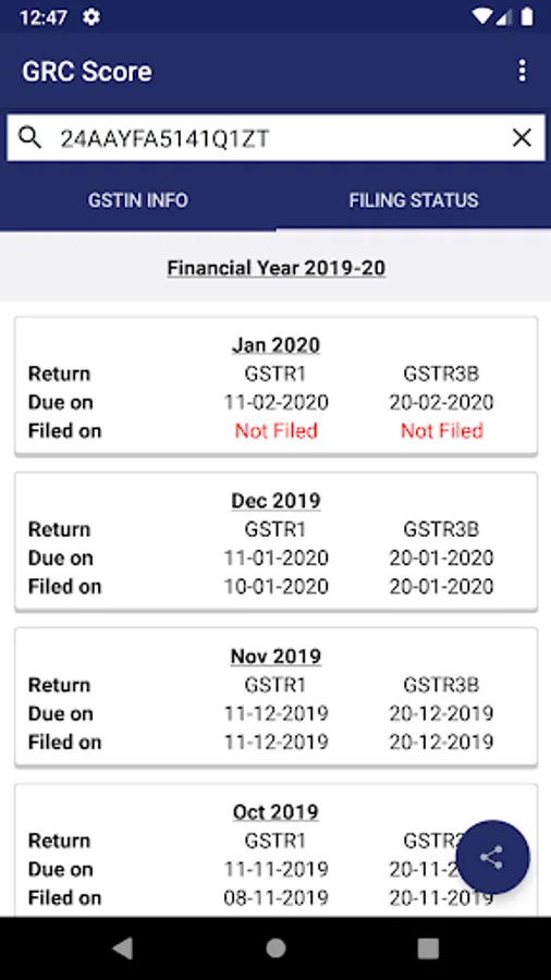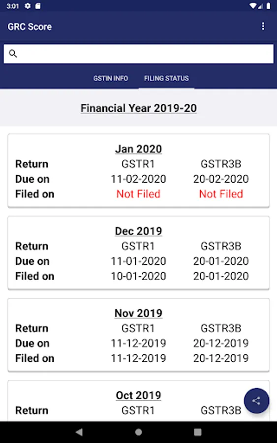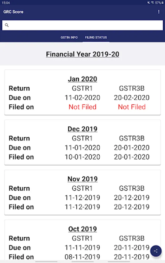 The app will also show you the company’s return filing date for each month. This is a public data which can be retrieved from the GSTN portal. The app uses API to get this data.
