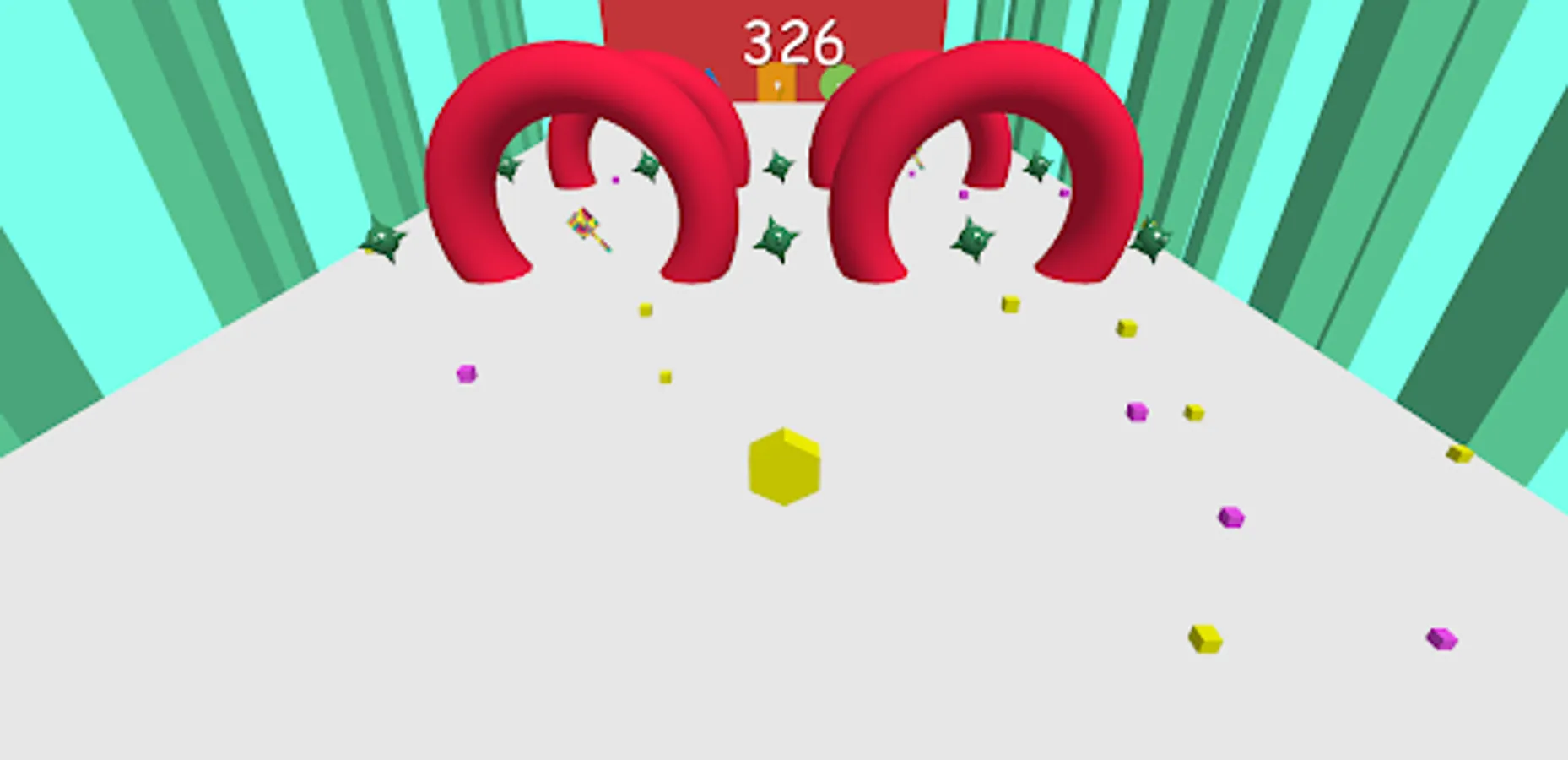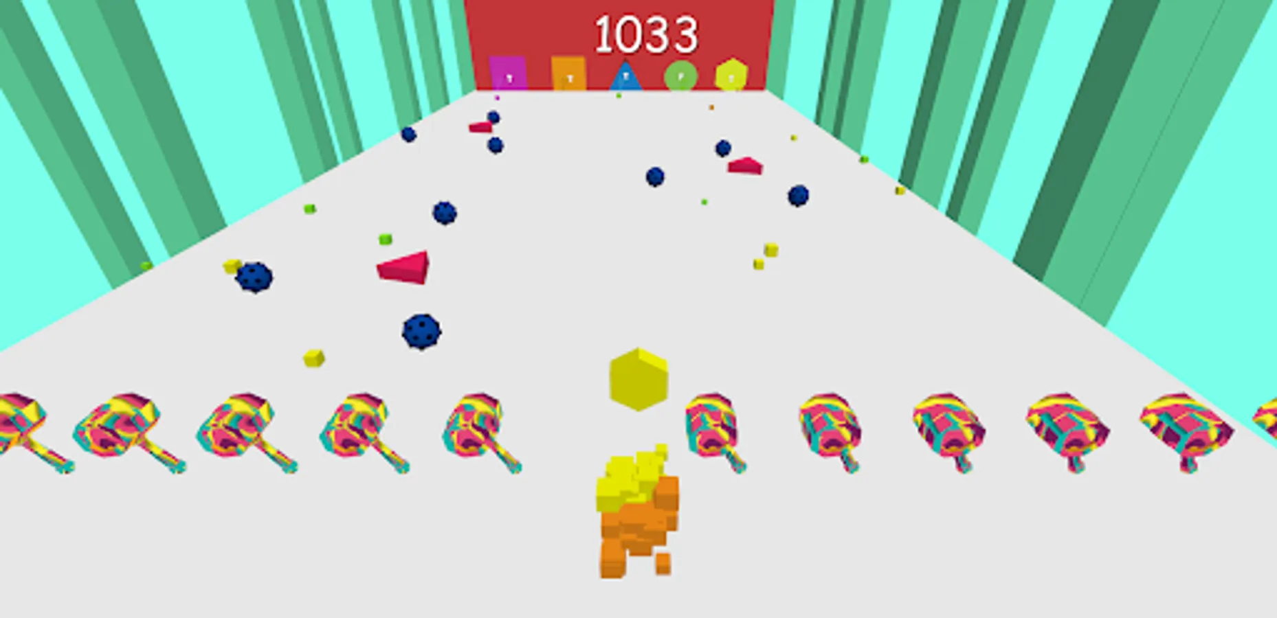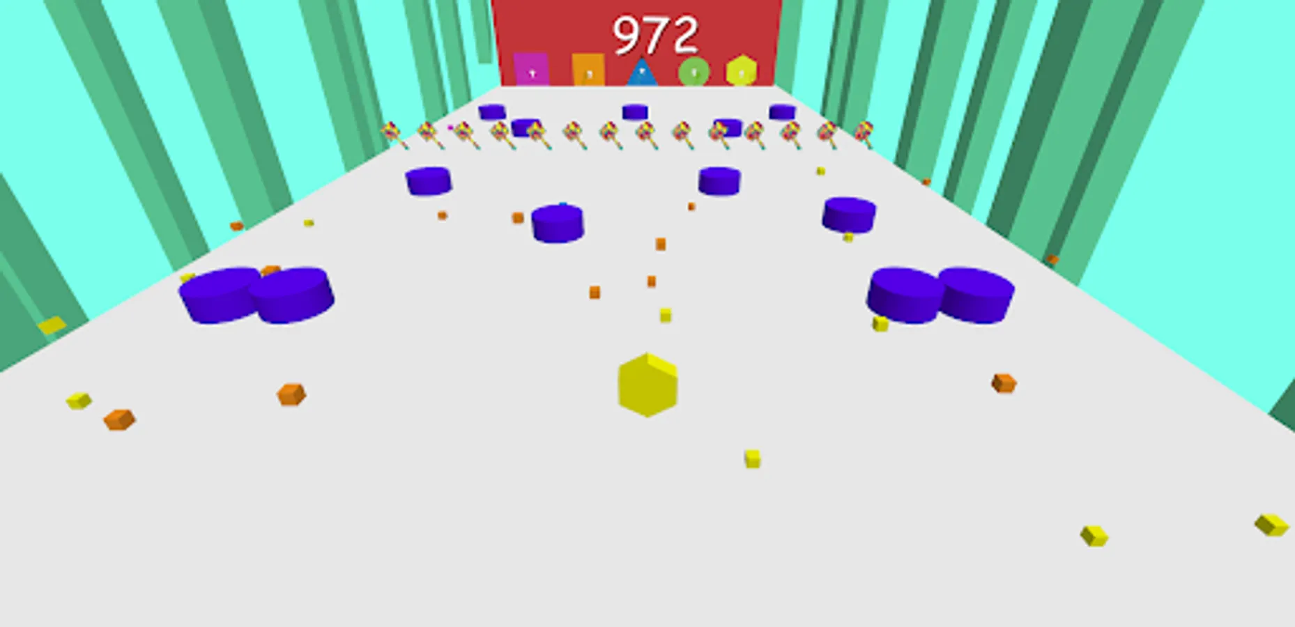 Each time you hit the hammer your shape will be changed to one of these six shapes (Cube, Sphere, Cylinder, Pyramid, Cone, Hexagon) so, to stay alive you have to do two main things, firstly, avoid obstacles and secondly enter the suitable gate based on your shape after collecting the key of it. The distance you reach will be your score and you can see your rank using the leaderboard, you have to keep in mind that your shape's speed will be increased over time. This game is simple but it needs focusing.