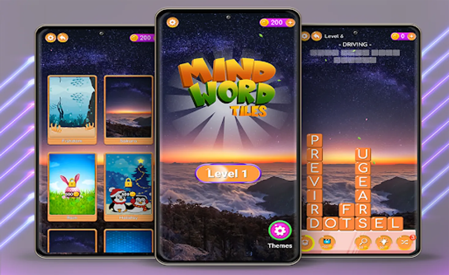 Mind Word Tiles is a Puzzle game in which have to detect the Words, match them and open the next levels, a challenge on each level, attractive game user interface, and much more fun!