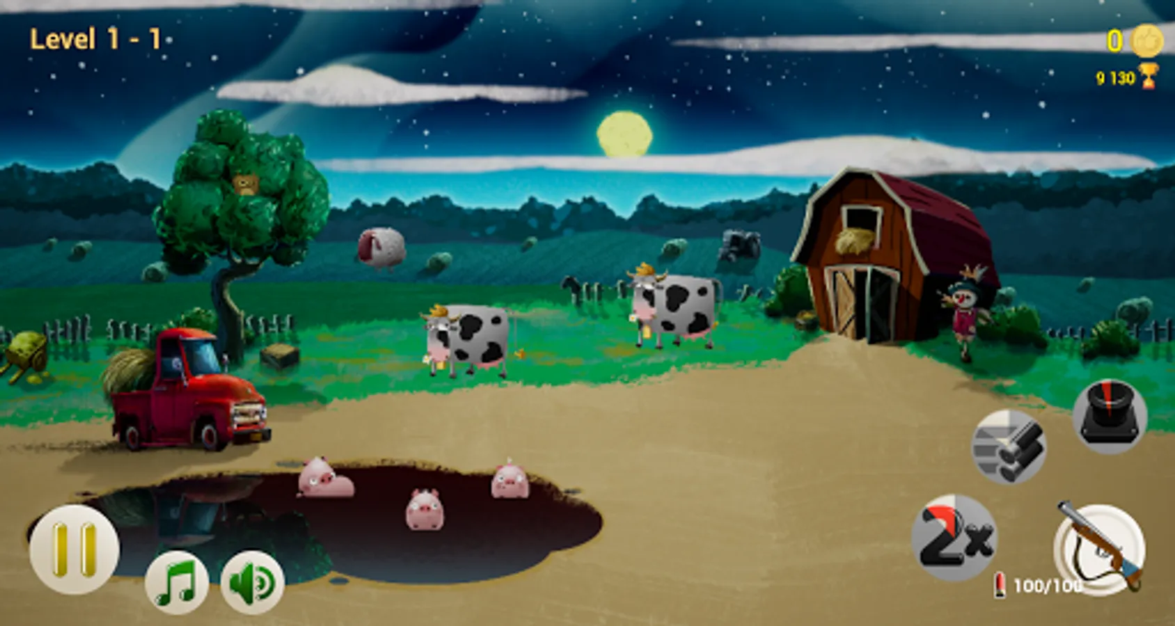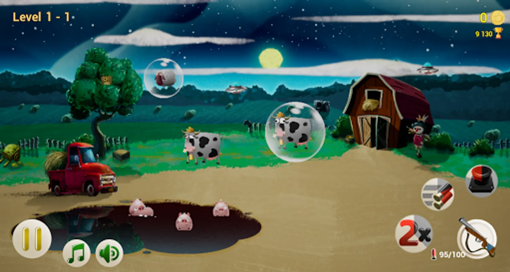 You are just a simple farmer who has lives his usual life. One fine day, your farm was attacked by aliens! They steal your livestock to make terrible experiments with them! Protect your cows and sheep from merciless alien invaders!