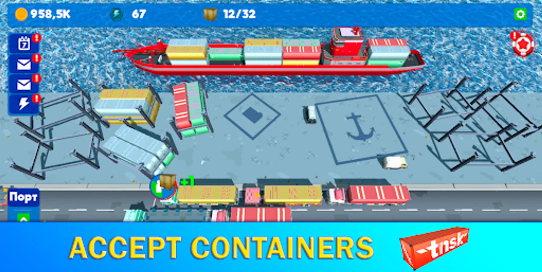 Complete tasks and earn acceleration to increase the speed of ships or to increase the chances of the arrival of trucks with VIP containers.