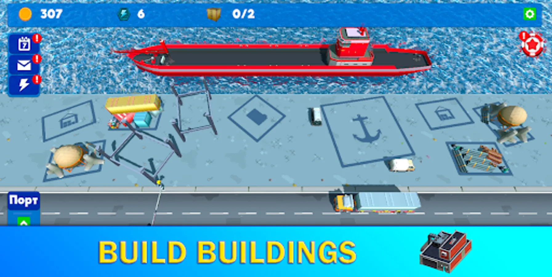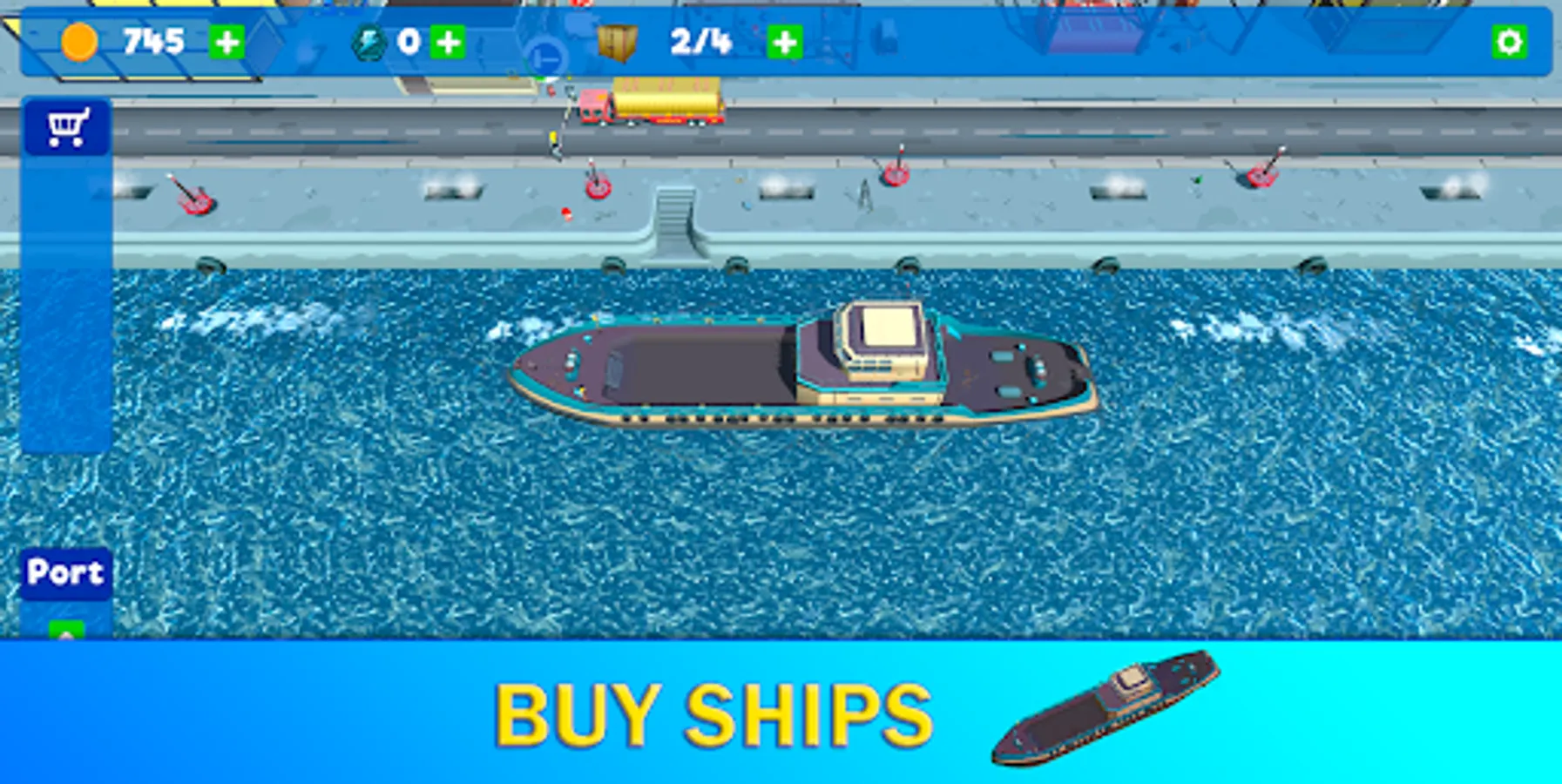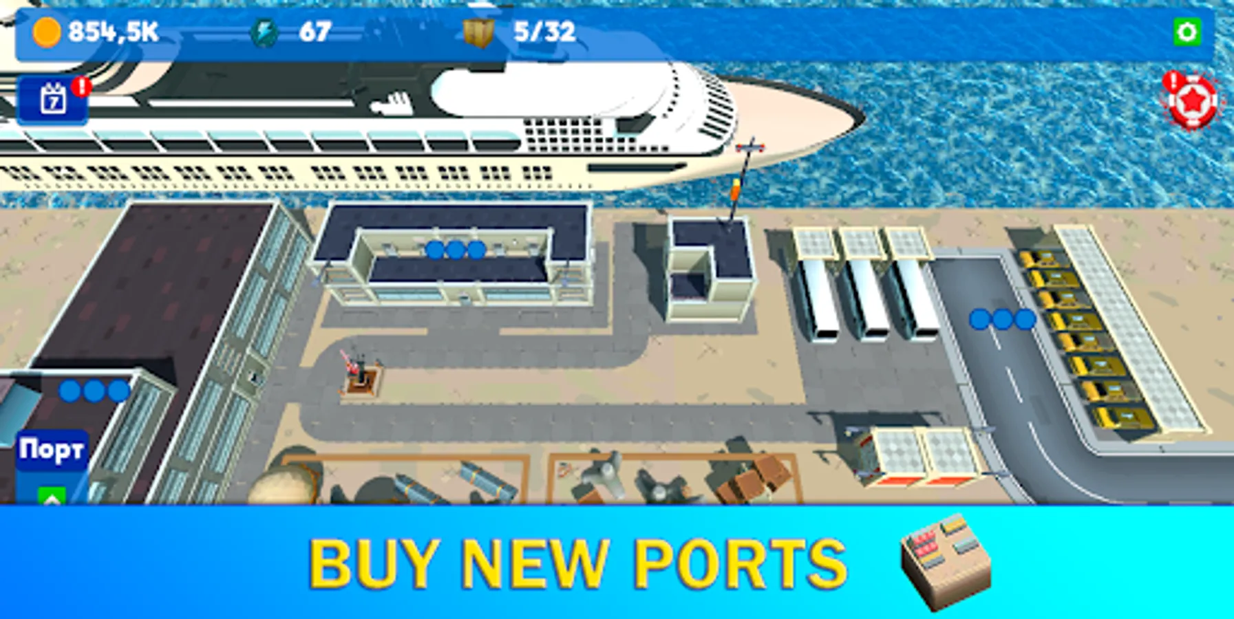 Become a full-fledged owner of different ports. Build new buildings and buy new ports to expand your business. Ports can contain the following buildings: Office, Restaurant, Water and Oil Plant. The income of such buildings depends on how much you add to these buildings.