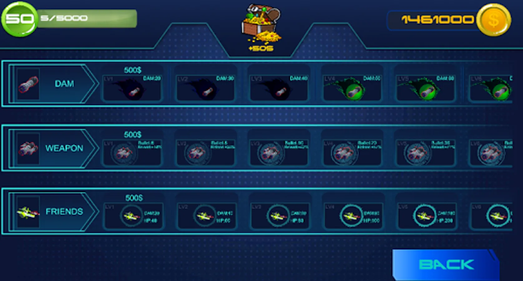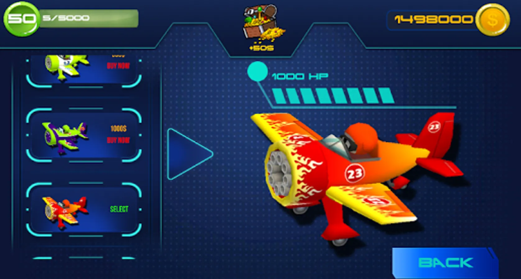 After intense battles, you will earn a huge amount of gold, using this gold to upgrade your fighter to be stronger. Besides, you can also buy new types of aircraft with more terrible power.