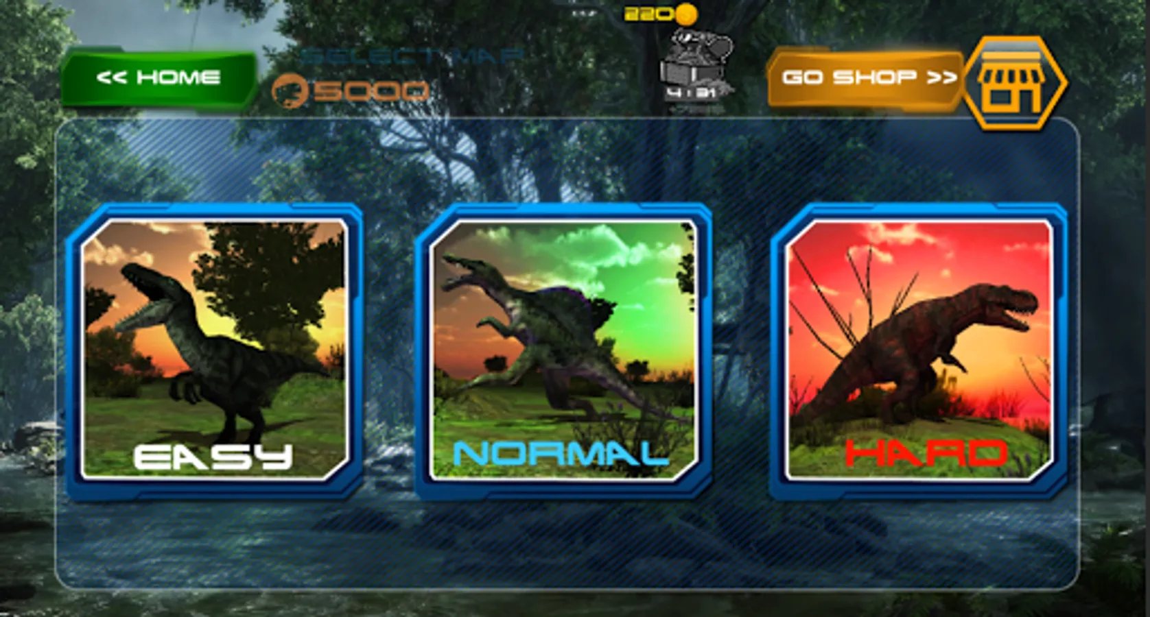 Right now, you will have to play a hero with skillful skills. You will lead yourself into the mysterious forest of this powerful dinosaur. By buying and upgrading your gunfire weapons, you will have the power to cope with the most powerful dinosaurs in this mysterious forest. Your mission in this game is to survive and destroy. In the dinosaur garden you will be a hunter to hunt dinosaurs or you can be the target for the dinosaurs to hunt you if you go the wrong way, so in every step of your own, you must be very careful kidney, otherwise it will be the prey of these tyrant dinosaurs.