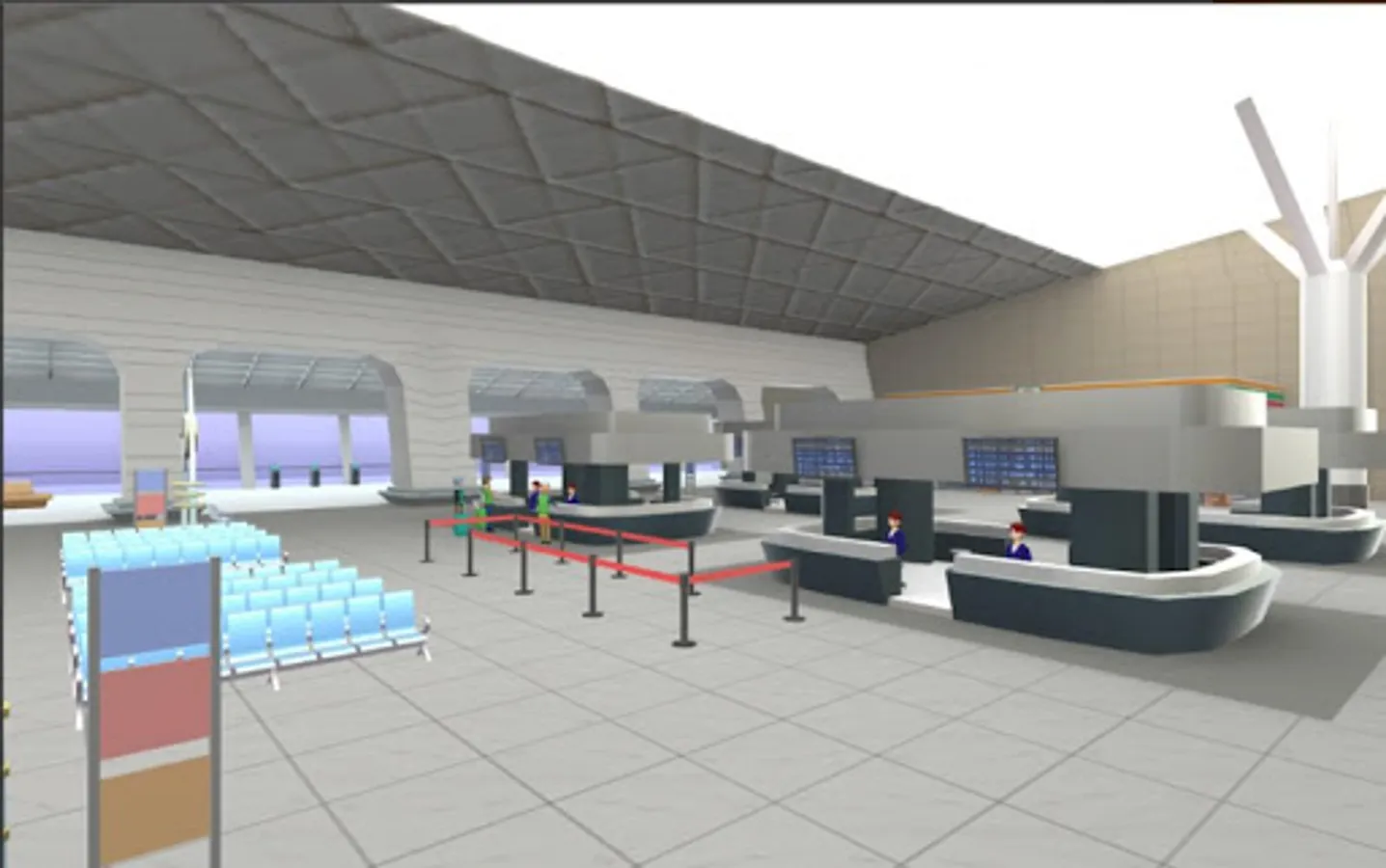The whole course includes 8 3D virtual scenes and dialogue virtual characters, including airport lobby, convenience store, exit checkpoint, restaurant, cabin, information desk, transit hotel, terminal MRT, etc. Each scene provides 3 response points. Students are free to choose which level they want to start from. During the process, the virtual characters will ask questions in English, and students can answer the questions according to the question type.