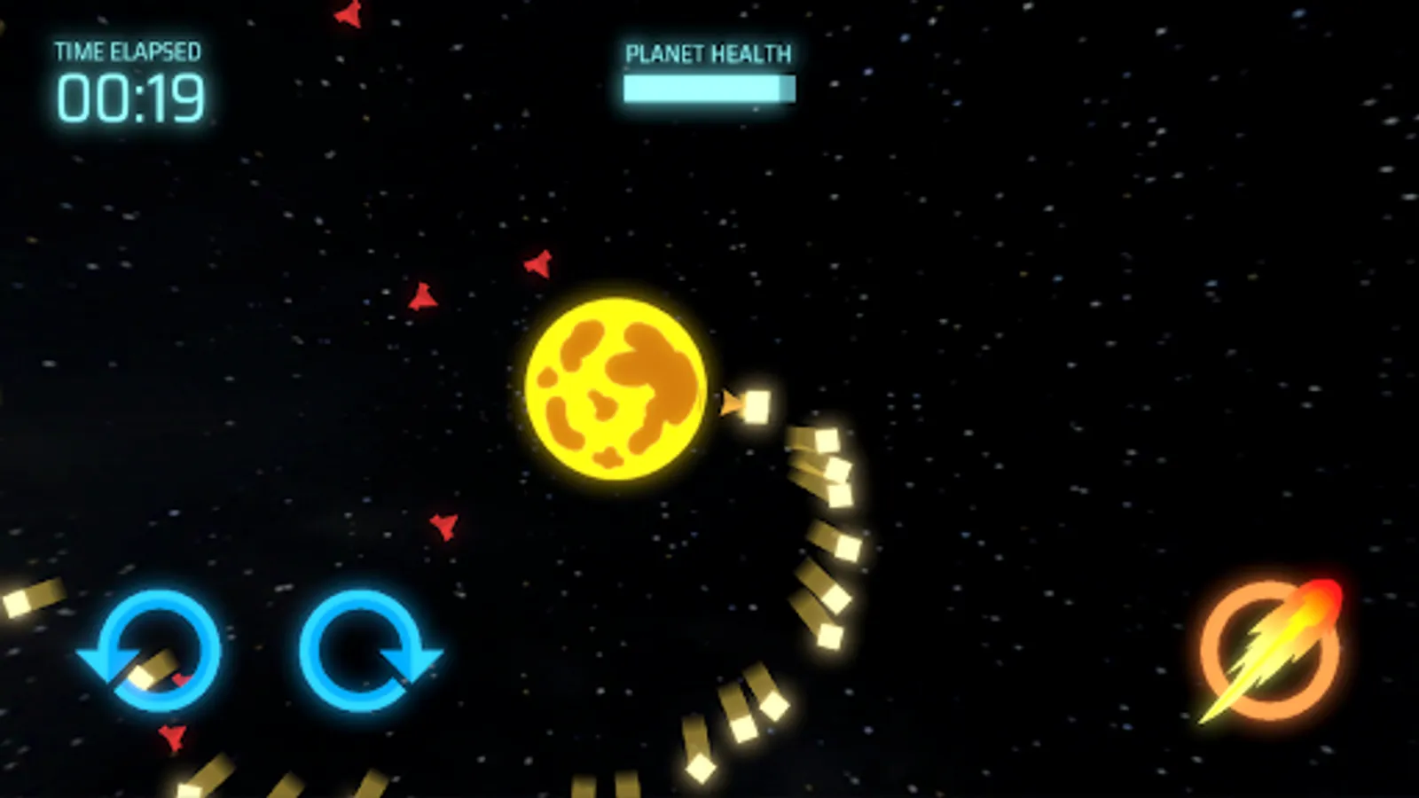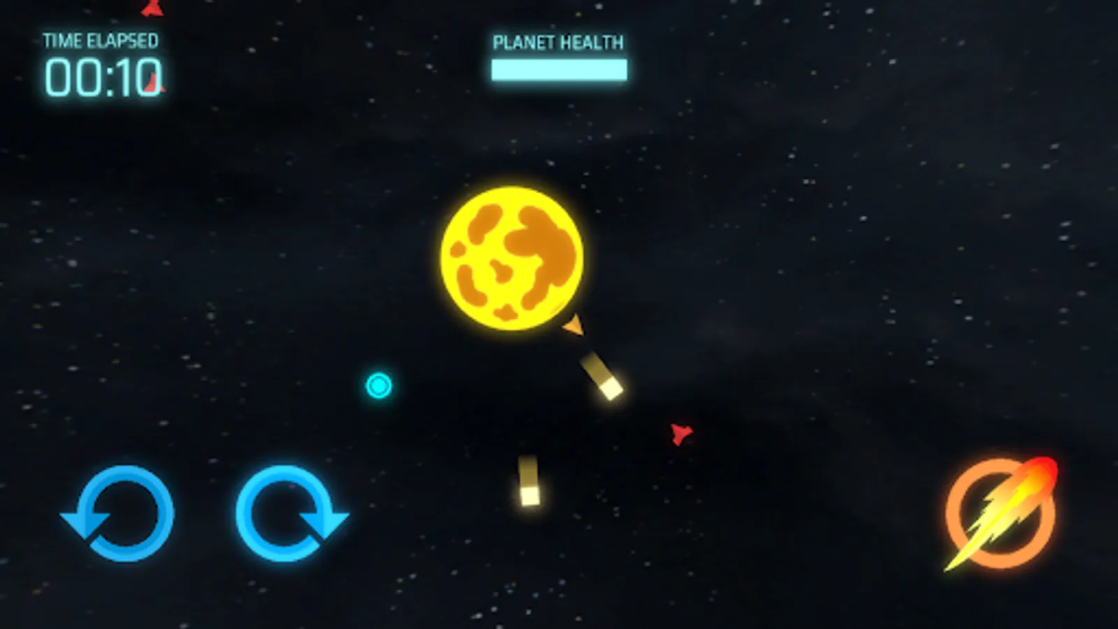 The aim of the game is to defend the planet. You are a rocket ship who can shoot and destroy incoming enemies. Do so for as long as you can.