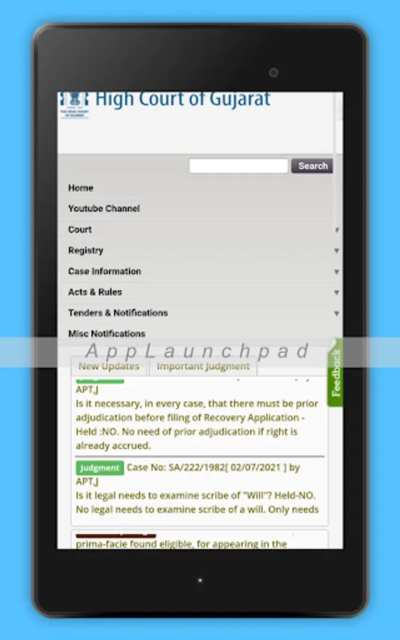 This app provides the detailed information about Gujarath High Court Case Status info.