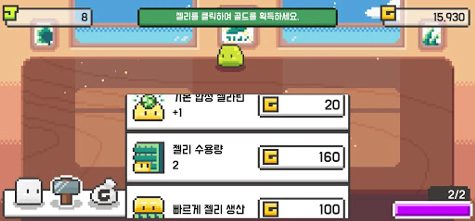 젤리를 업그레이드하여 골드 획득을 증가시키세요.