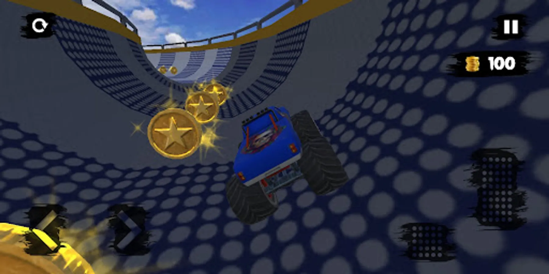 - Challenging vertical mega ramp monster truck stunts of tracks games