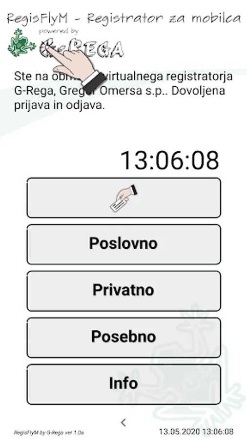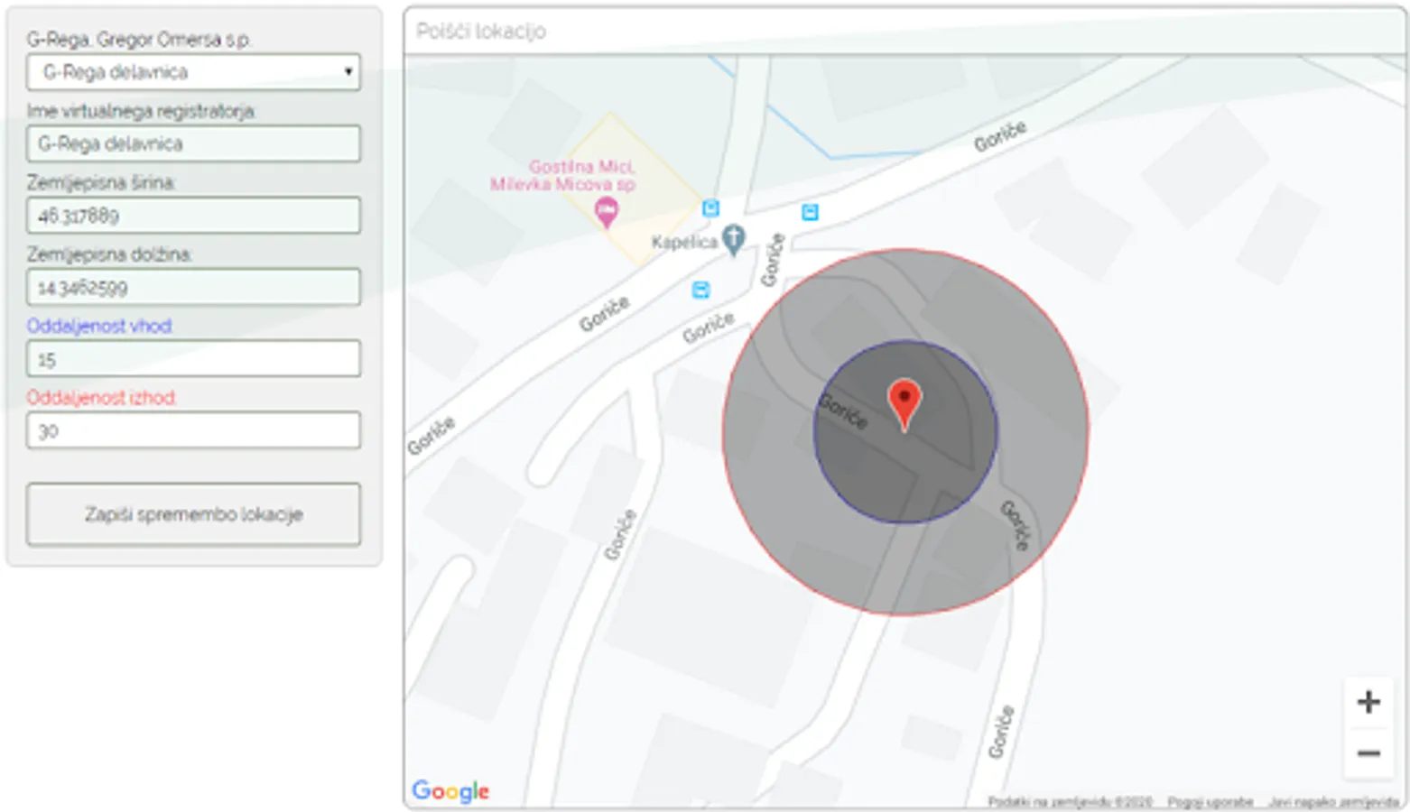 The solution to this is RegisFlyM, our new virtual recorder that can completely replace the physical time attendant. Namely, it consists of a virtual registrar, which is a specific geolocation, and an application on a mobile phone, which is used to log in to a specific area of the virtual registrar.