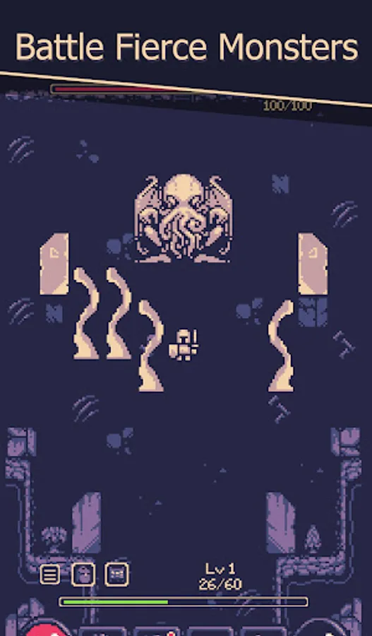Play one-handed and swipe to move any direction or play with on-screen Dpad. Attack enemies by bumping into them. Collect coins to buy healing items and more. Explore challenging dungeons like Caves, Castles, Underworld, and more through your adventure to scavenge loot needed to survive longer!