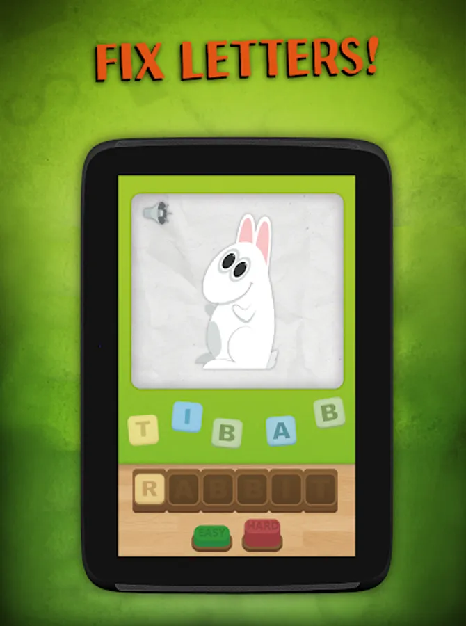 What kids need to do is to put letters in the right order to create an English word that describes the picture above.
