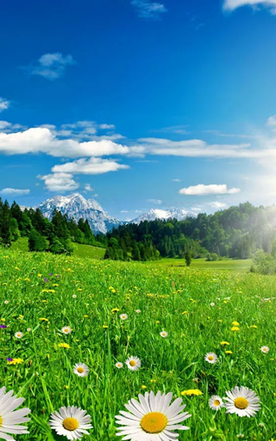 Here is the new Flower Spring Live Wallpaper for all of you nature lovers who want to decorate your smartphone screen with beautiful HD pictures of breathtaking springtime landscapes. Enjoy the marvelous view of flowery fields, valleys covered with fresh green grass, clear waters of calm rivers and sun shining in the blue sky. These high resolution nature images will be the healing sight for sore eyes. You will become one with marvelous springtime nature and beautiful green landscapes.