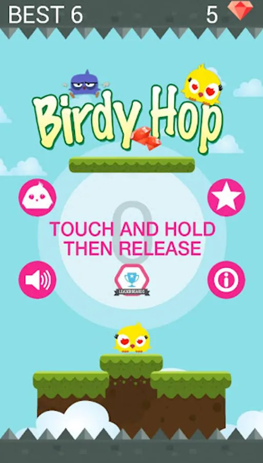 Tap and then hold to get Birdy ready to jump, then release to let her hop to the above platform and then again to another platform. It takes great skill and patience to have success with this adventure.