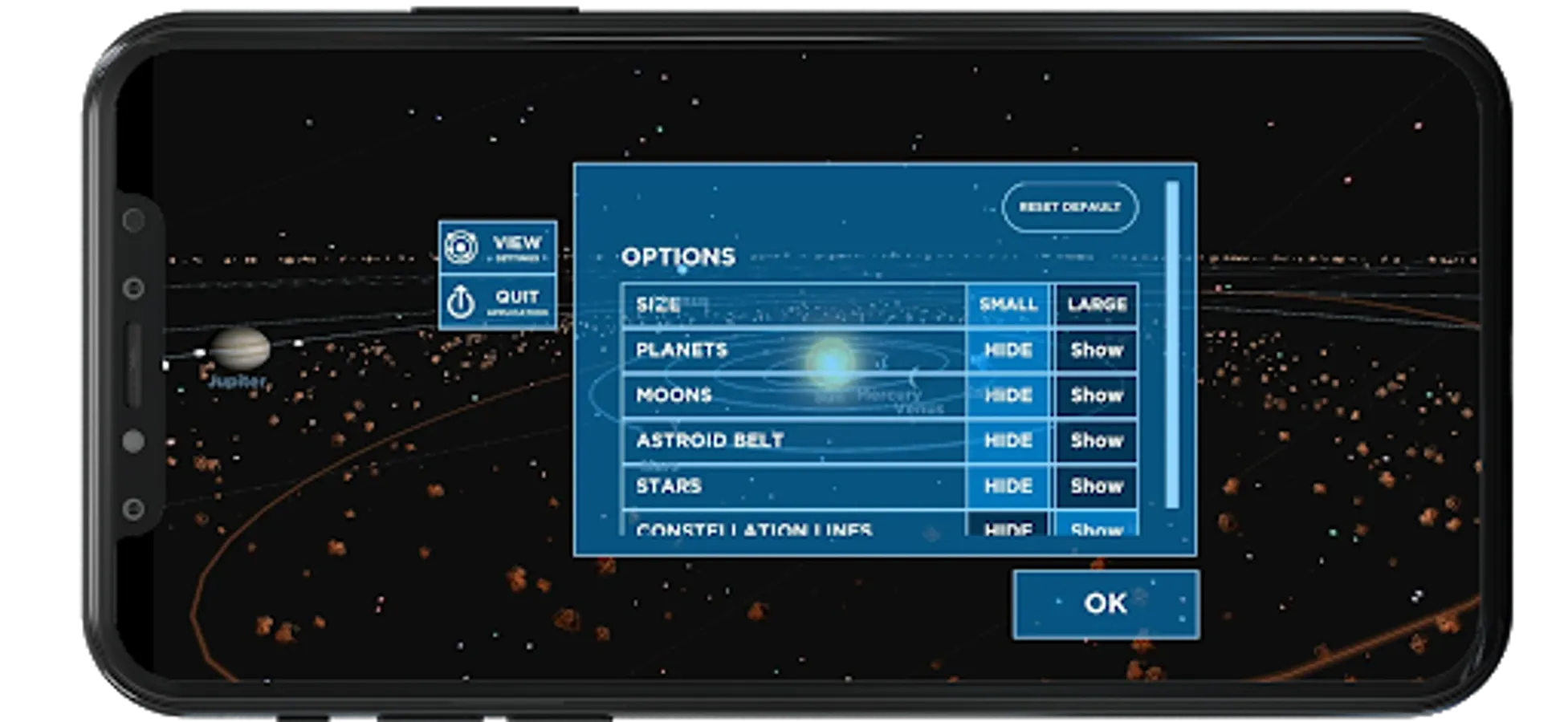 With the solar system 3d Space Explorer app User will have detailed information about the stars planets the solar system the phases of the Moon or the constellations.