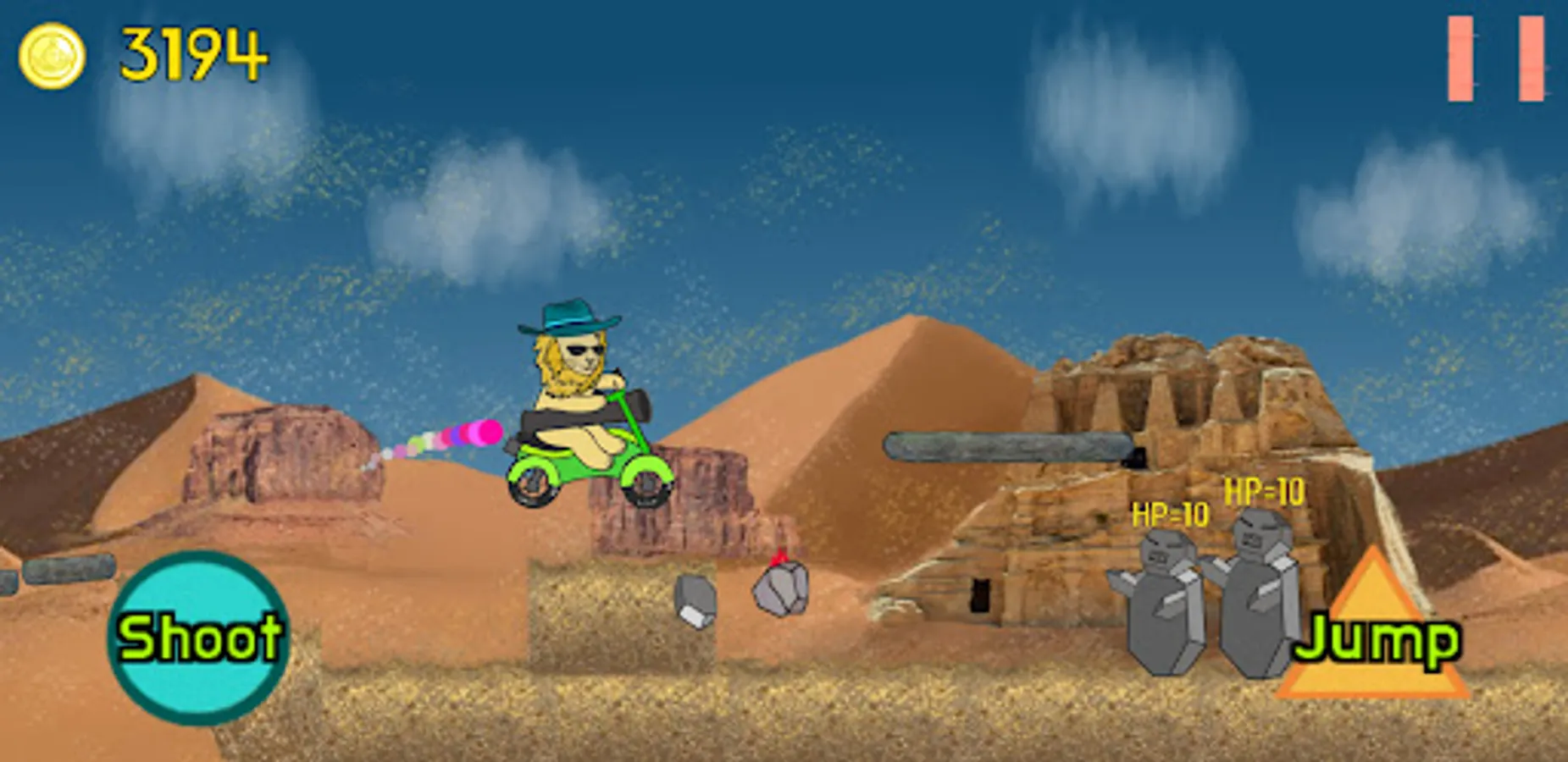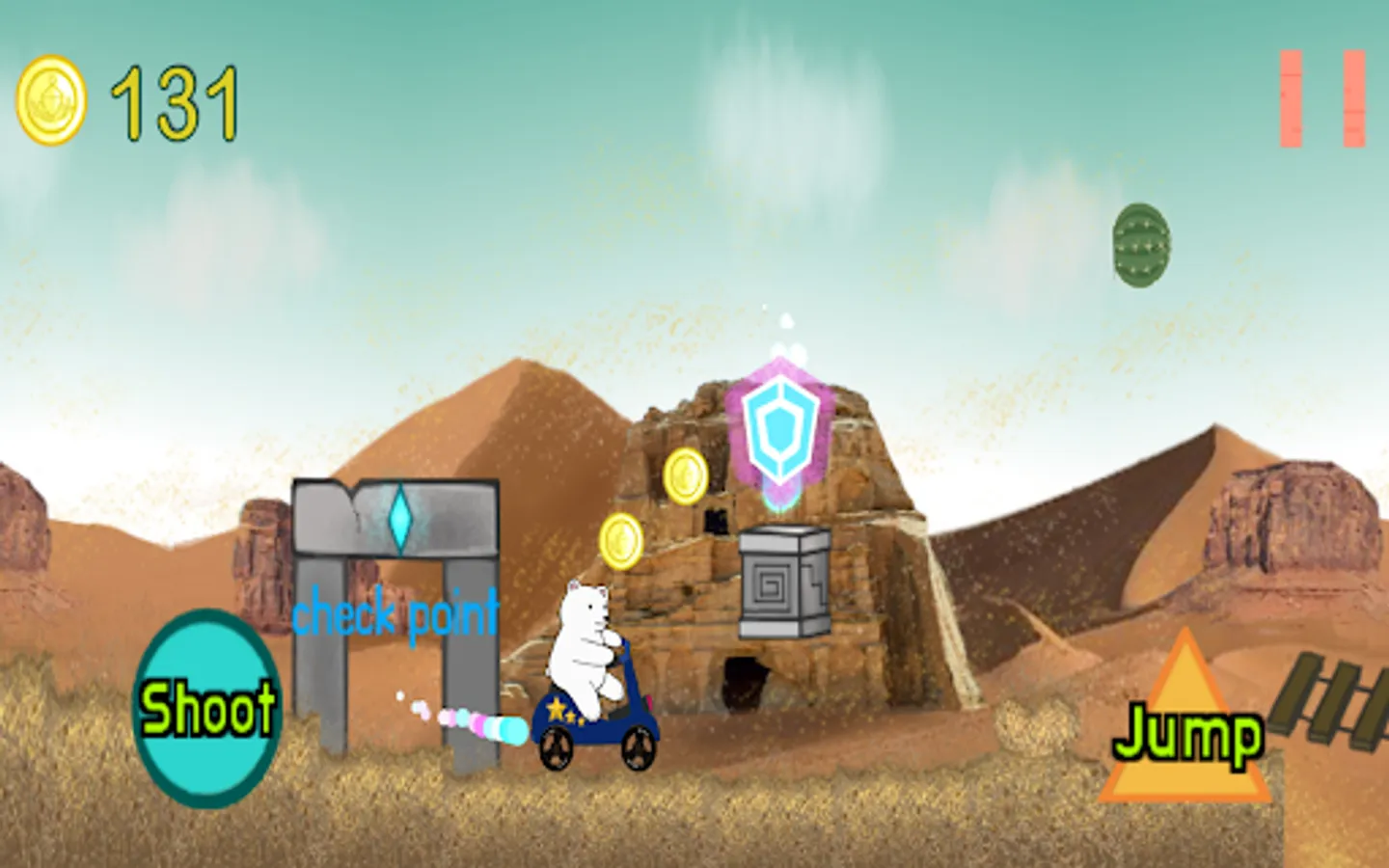 Explore the world by shooting and jumping.