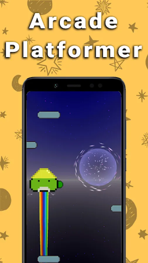 Game is a little similar to legendary "Doodle Jump". Easy and exciting arcade jump-platformer.