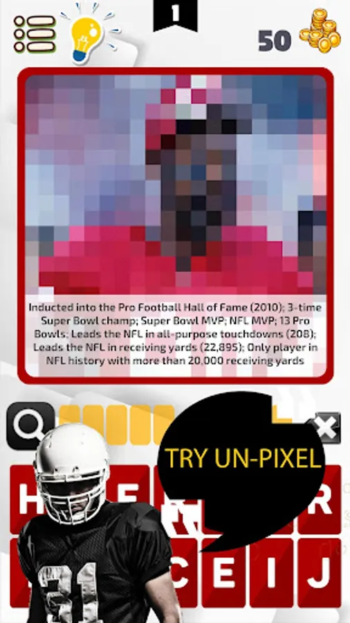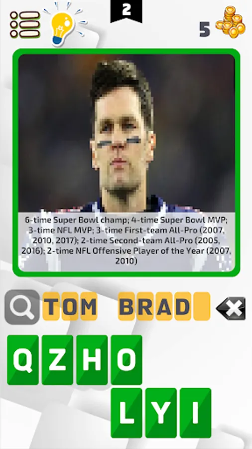 American Football Player Quiz is a quiz which ask you to guess name of players using their picture & achievements as a clue.
