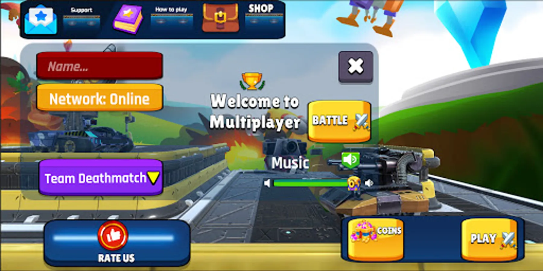 Conquer the warzone with your friends by defeating the enemies' tanks. Face a fierce battle in Team Deathmatch or Capture the Flag.